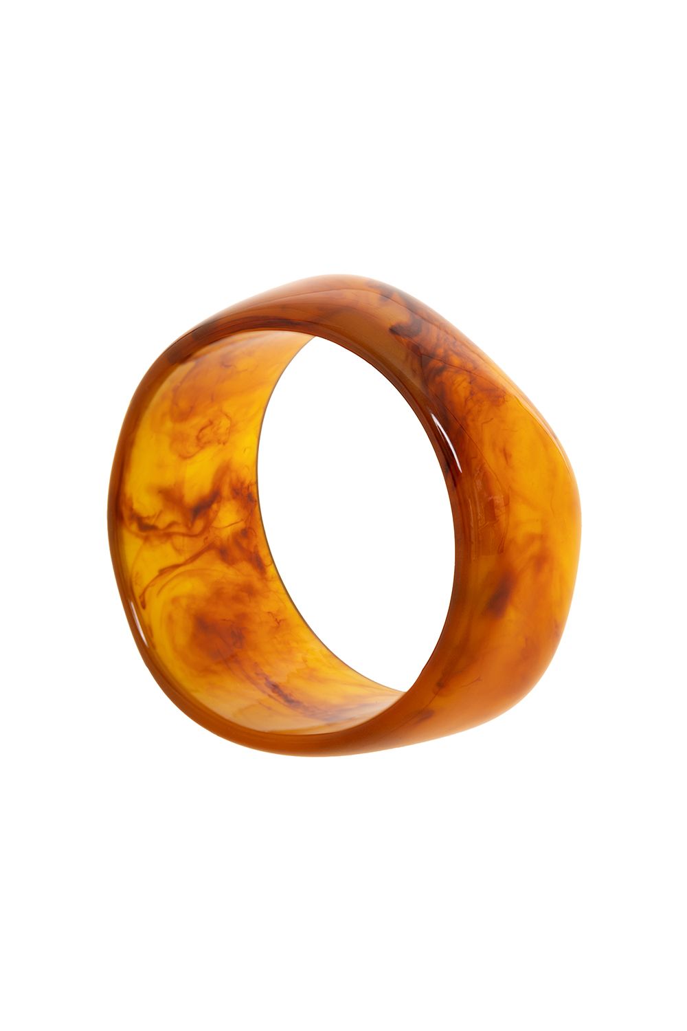 Объемный браслет выполнен из гладкого полупрозрачного материала в медово-карамельных тонах. Легкий и удобный, он станет стильным акцентом в любом образе — от повседневного до вечернего. Состав: 100% пластик