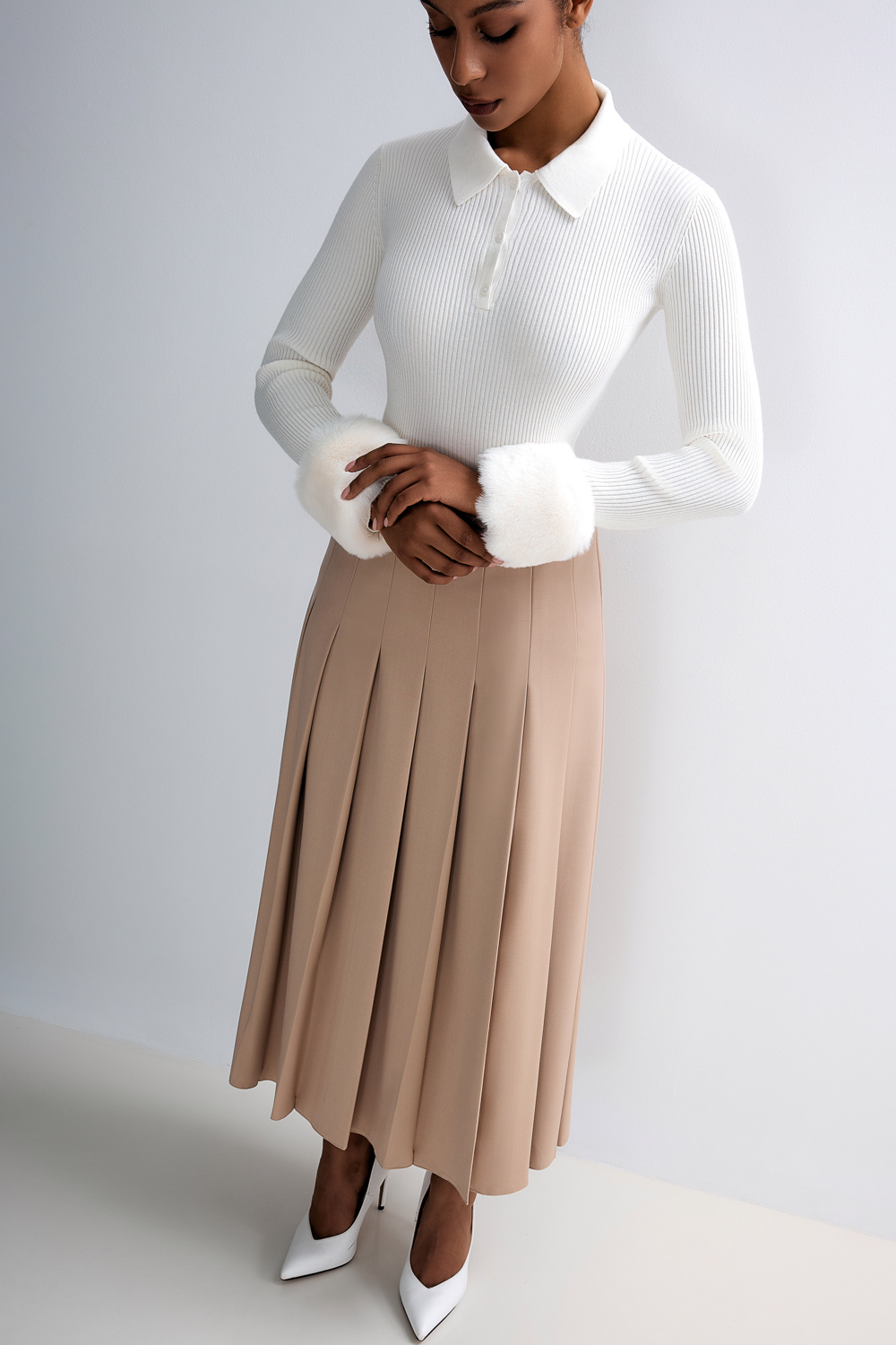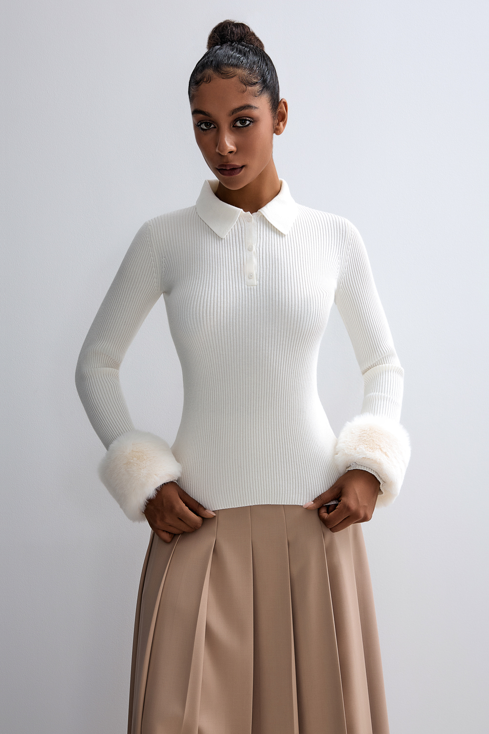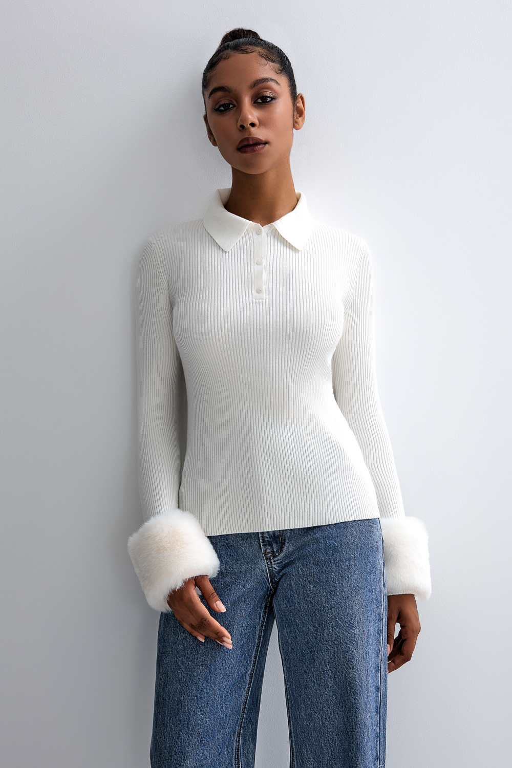 Кофта с мехом на рукавах