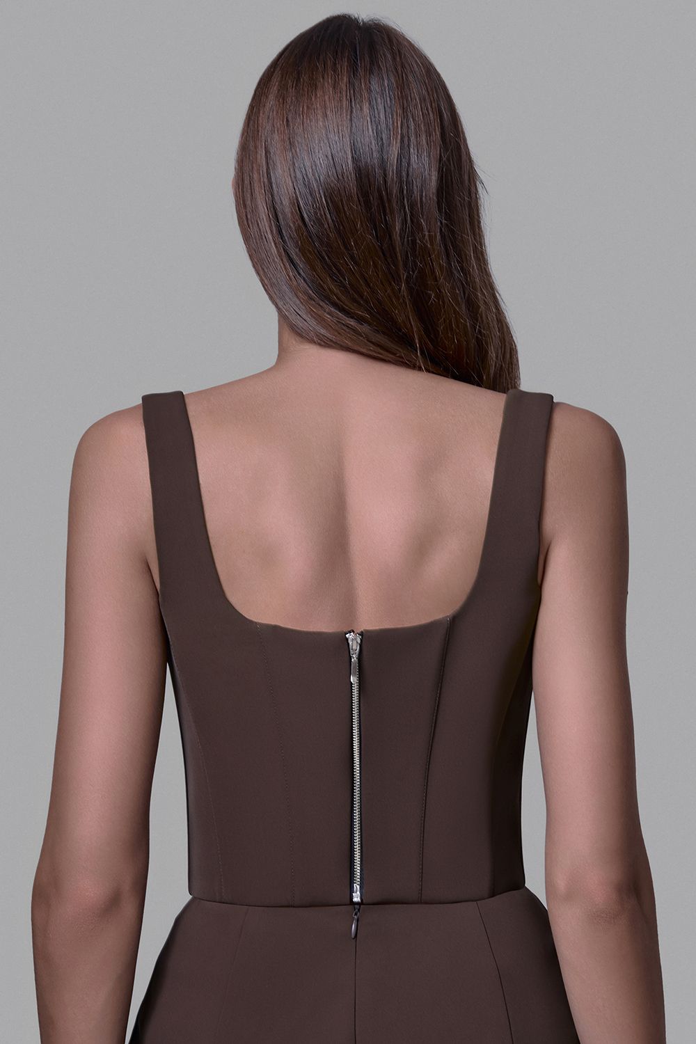 Корсет с широкими бретелями и квадратным вырезом.Приталенный силуэт с фигурным низом подчеркивает талию и создаёт акцент на линии груди. Жёсткие вертикальные вытачки формируют чёткую геометрию, а плотная ткань держит форму, обеспечивая идеальную посадку. Состав: 72% полиэстер, 15% нейлон, 10% вискоза, 3% эластан;подкладка:95% полиэстер,5% эластан