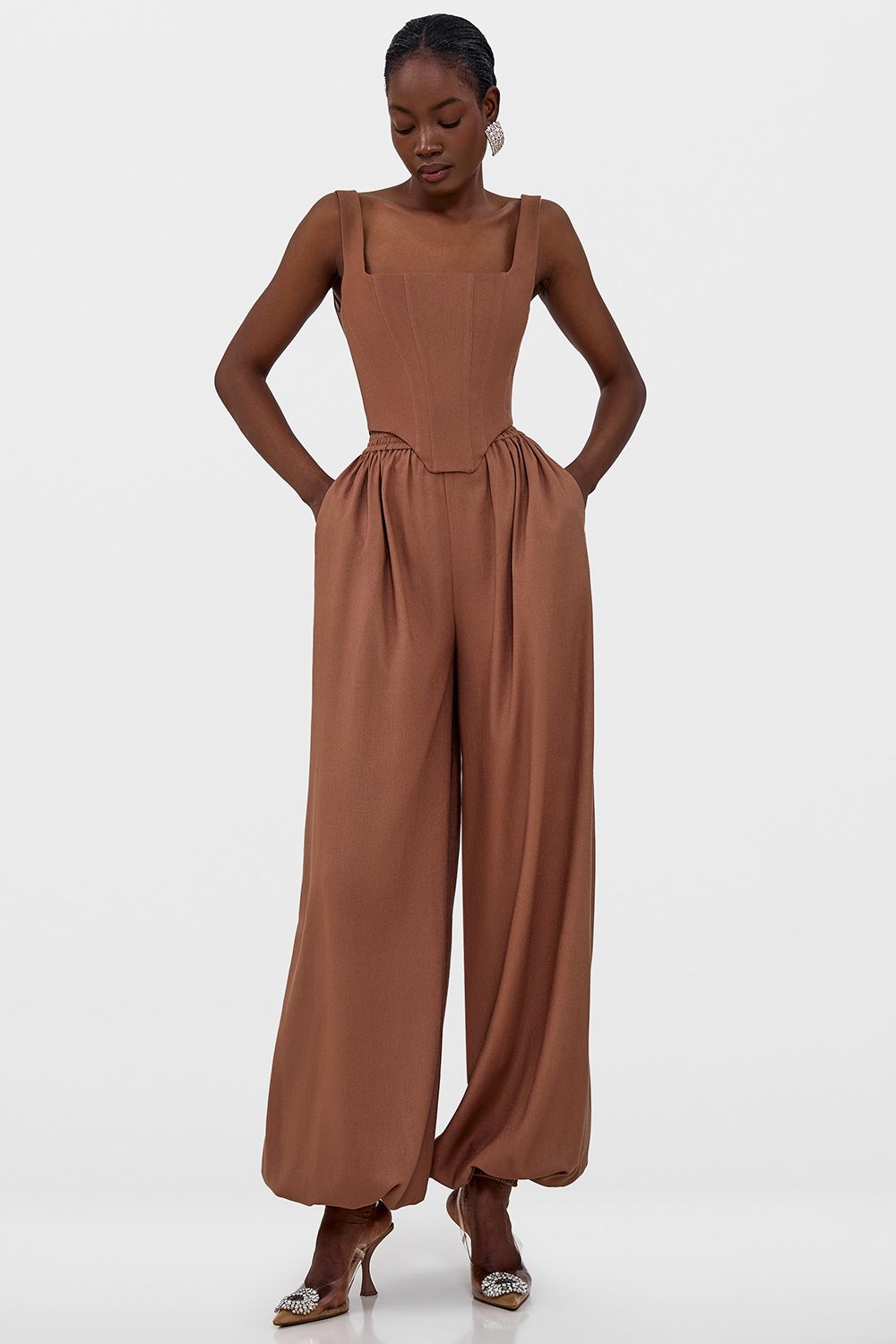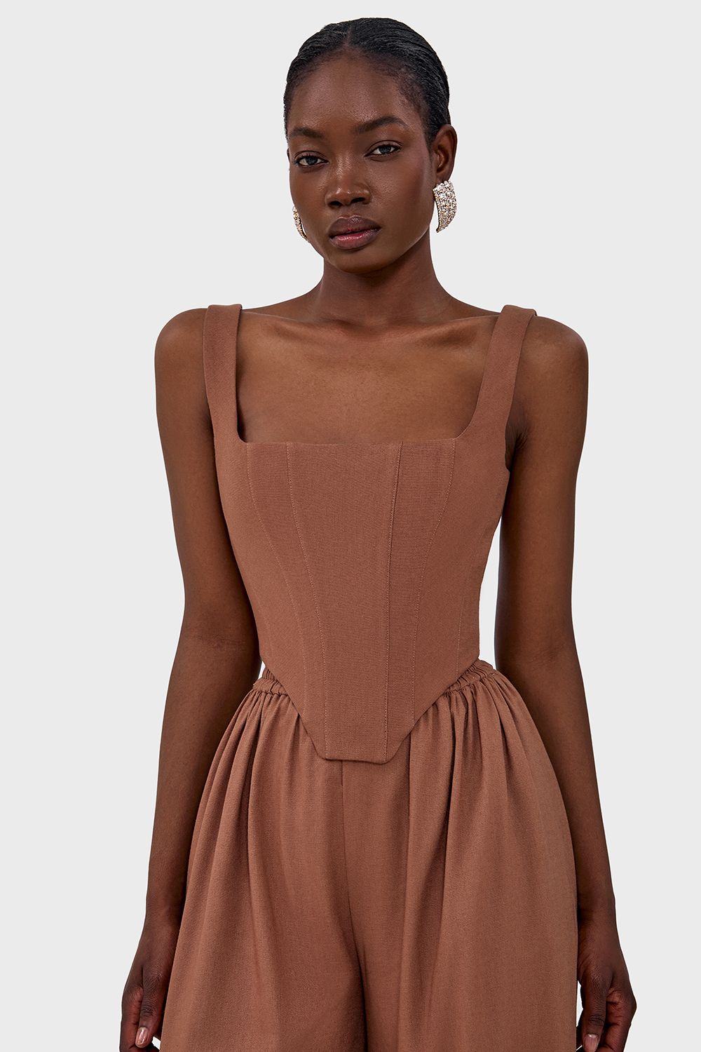 Корсетный топ, выполненный из легкой ткани, идеально подчеркивает талию, создавая изящный силуэт. Прямой крой верха с квадратным вырезом добавляет образу нотку современной элегантности. Состав: 70% вискоза, 30% лен; подкладка: 95% полиэстер, 5% эластан