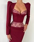 Элегантный корсет глубокого оттенка с утончёнными кружевными вставками создан для тех, кто ценит выразительный силуэт и эффектную архитектуру изделия. Жёсткая чашка и структурированные линии формируют красивую зону декольте, а полупрозрачная кружевная панель визуально подчёркивает талию, делая образ более женственным и изящным. Длинный рукав с мягким объёмом придаёт корсету современный, благородный характер. Состав: 95% полиэстер, 5% спандекс, Подкладка 97% полиэстер, 3% спандекс
