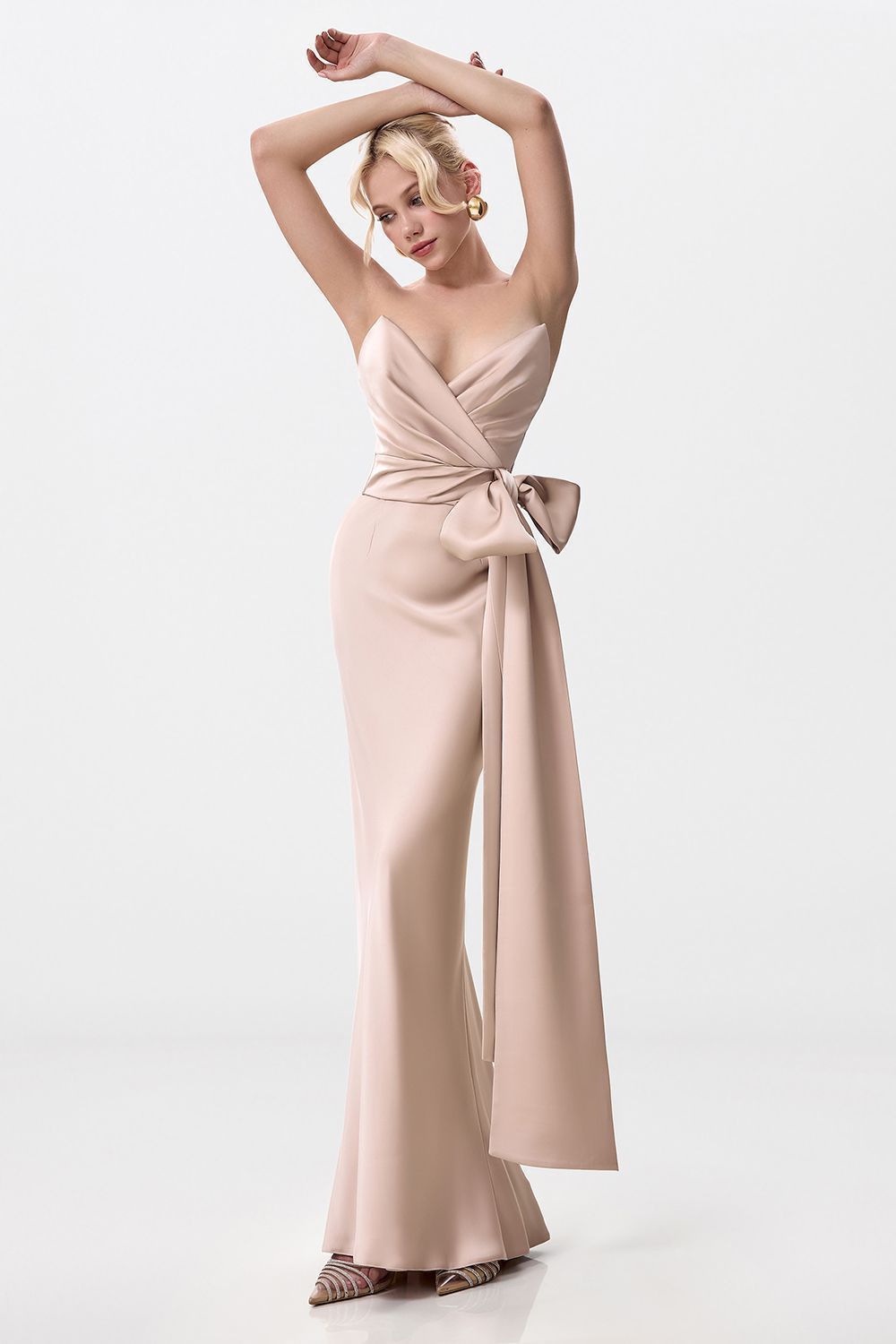 Топ с открытым верхом, акцентированным глубоким вырезом. Декоративный крупный бант, расположенный на передней части, служит центральным элементом дизайна. Концы банта удлинены, что придает образу дополнительную утонченность. Состав: 100% полиэстер, подкладка 97% полиэстер, 3% эластан