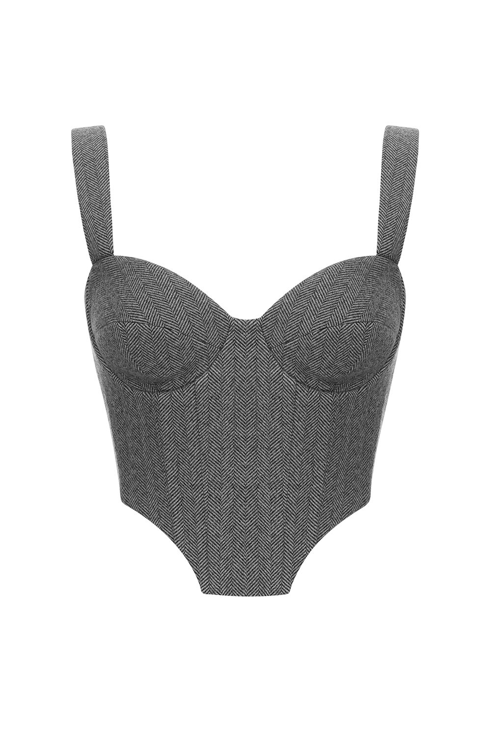 Корсет из плотной костюмной ткани с выразительным силуэтом и акцентом на линию груди. Модель выполнена в классическом стиле с рельефными швами и имитацией косточек, формирующих четкий, женственный силуэт. Широкие бретели обеспечивают комфорт и поддержку, а плотная посадка подчёркивает талию. Идеально сочетается с жакетом и мини-юбкой из той же ткани для создания современного образа. Состав: 75% полиэстер, 25% вискоза, Подклад 95% полиэстер, 5% эластан