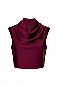 Топ из атласа с мягким драпированным воротом. Лаконичный крой без рукавов подчеркивает линию плеч, а шелковистая фактура ткани придаёт образу утончённость и блеск. Состав: 95% полиэстер, 5% эластан; подкладка: 97% полиэстер, 3% эластан