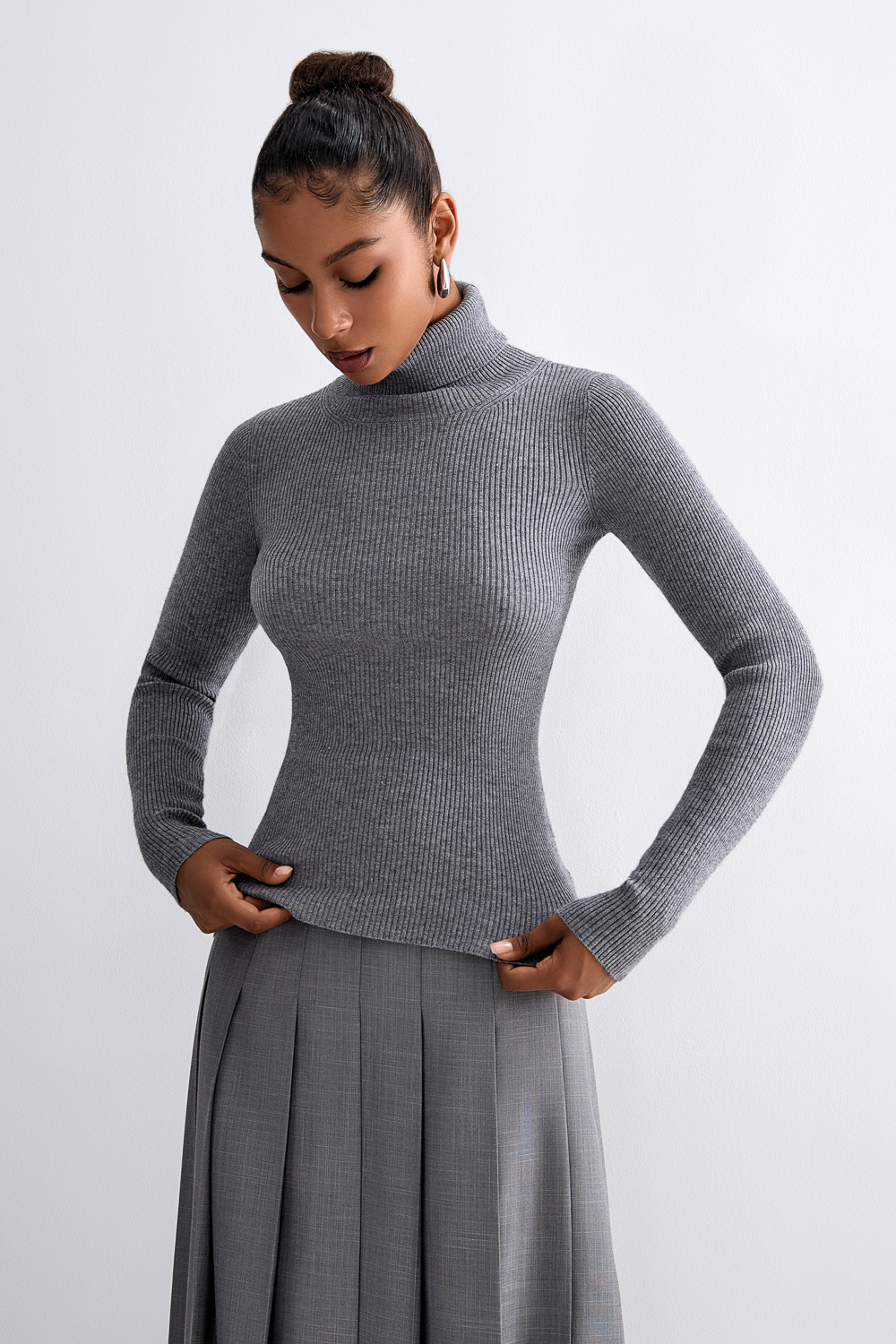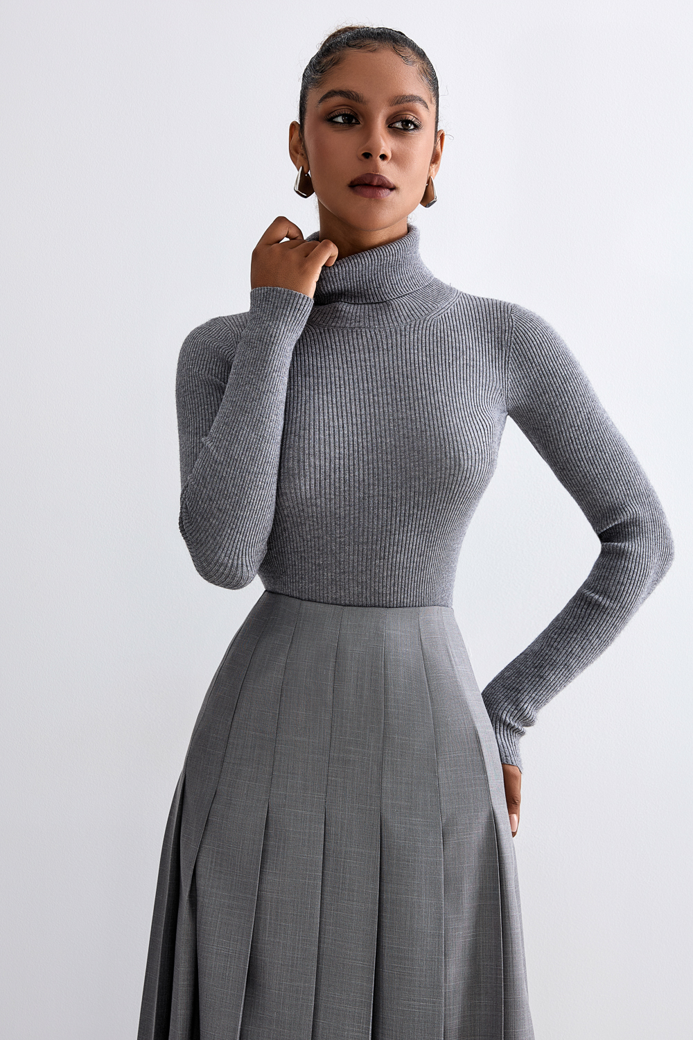 Универсальная водолазка в рубчик с высоким воротником и длинным рукавом. Водолазка идеально прилегает к телу, позволяя носить ее в прохладные дни как базовый слой с жакетами, кардиганами или пальто. Состав: 45% вискоза, 29% полиэстер, 17% нейлон, 9% шерсть.