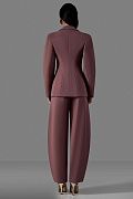 Брюки-бананы с высокой посадкой и мягким объёмом в области бёдер. Силуэт плавно сужается к низу, формируя аккуратную линию ног и подчёркивая талию. Минималистичный дизайн делает модель базовой для повседневного и офисного гардероба. Состав: 67% полиэстер, 29% вискоза, 4% эластан