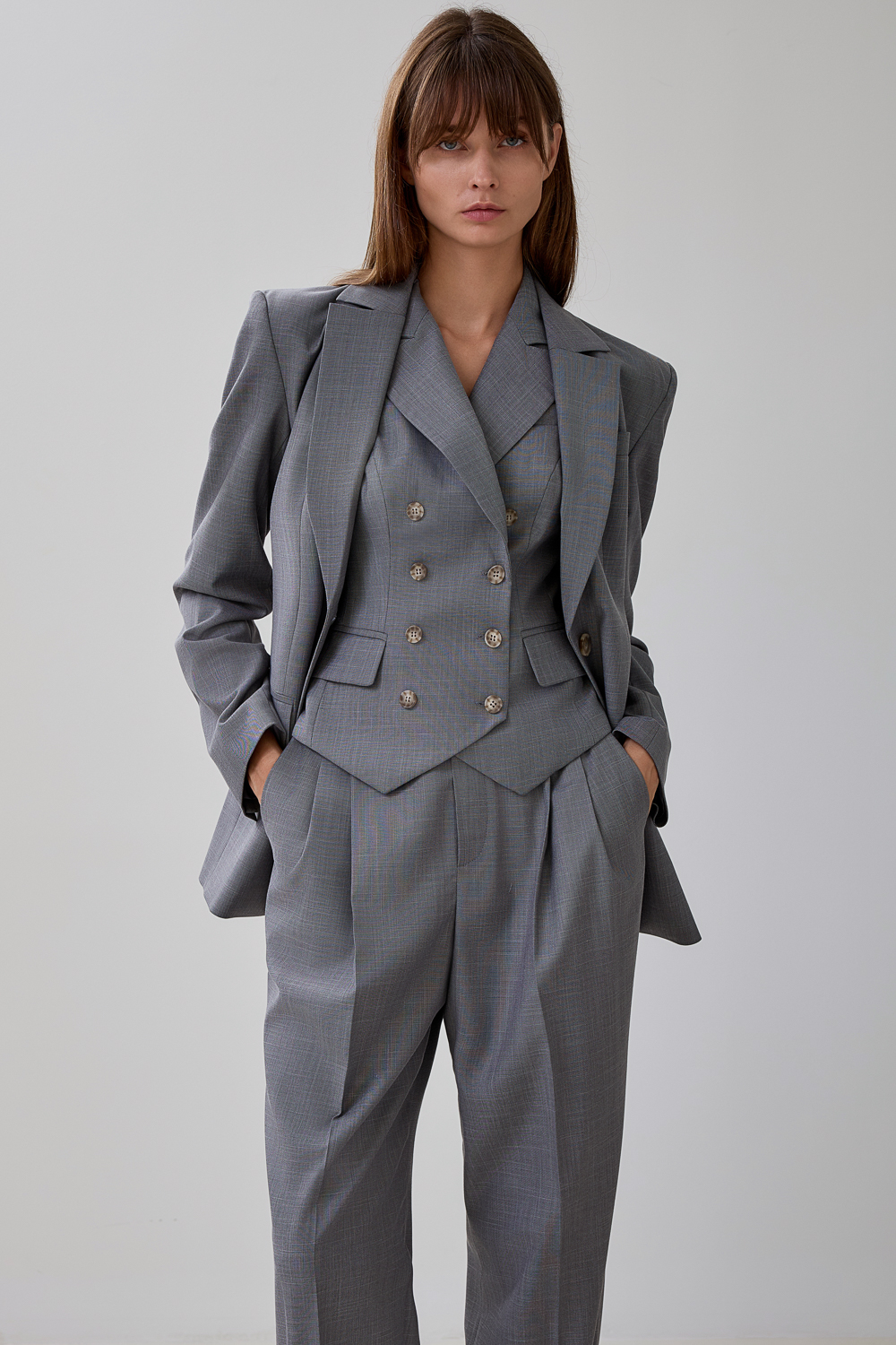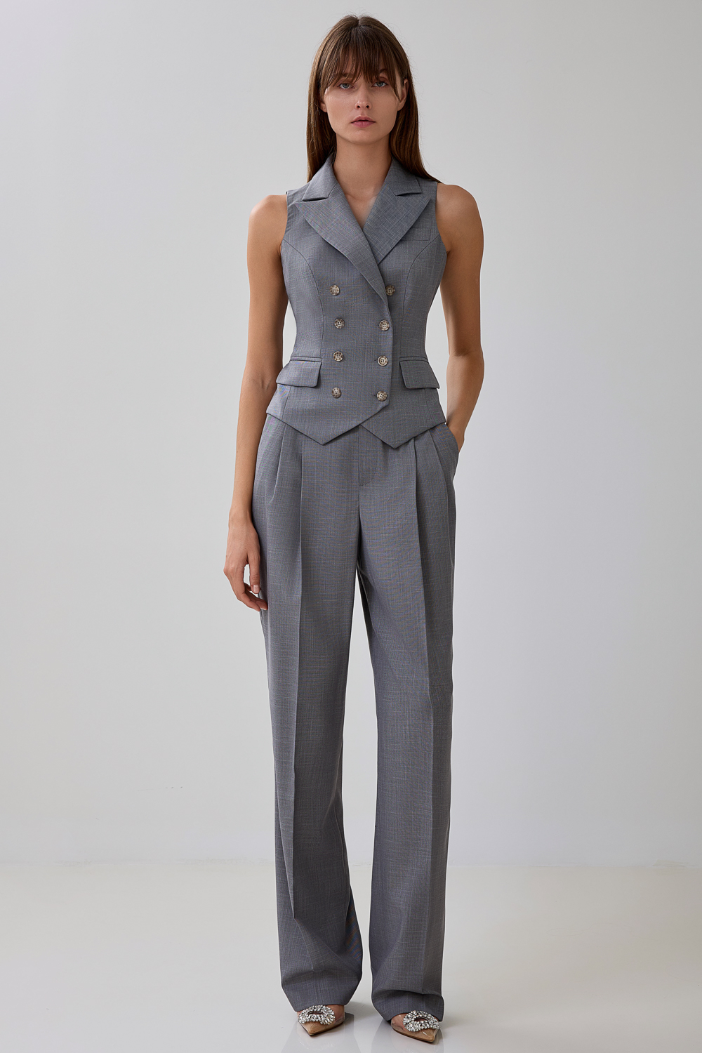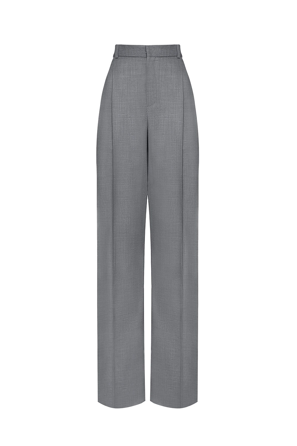 Брюки прямого кроя. Выполнены с высокой посадкой и защипами на передней части, что придаёт образу лёгкую архитектурность.. Прямой удлинённый силуэт визуально вытягивает ноги, а точный крой обеспечивает безупречную посадку. Боковые карманы добавляют функциональности, а мягкая пластичная ткань красиво драпируется при движении. Состав: 56%полиэстер,30 %вискоза,14% сорона