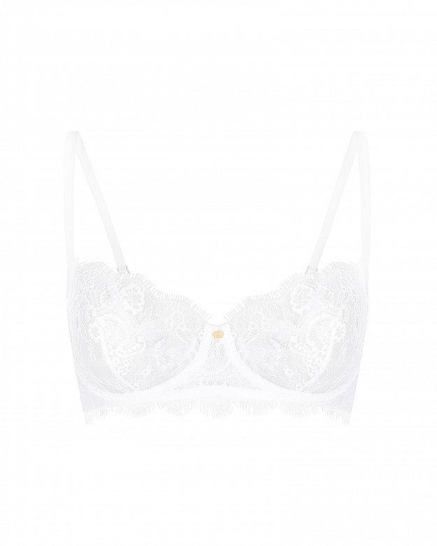 Кружевной бюстгальтер из тонкого чёрного кружева, созданный как ювелирная деталь образа. Состав: 93% полиамид, 7% спандекс