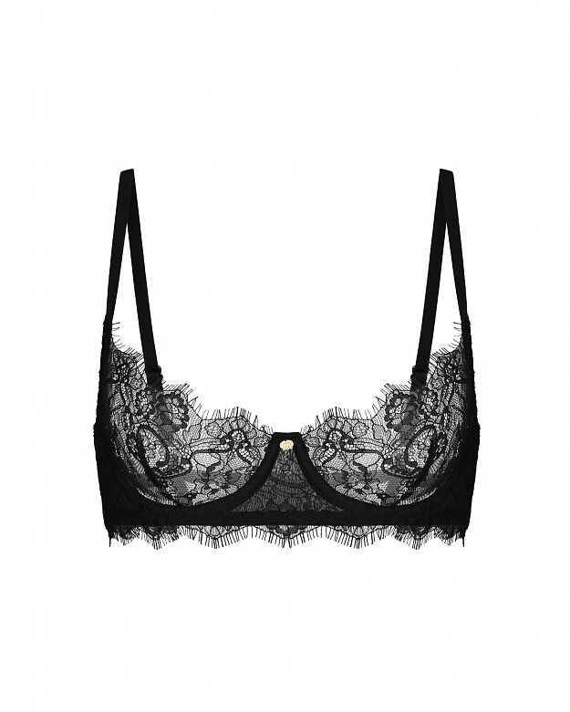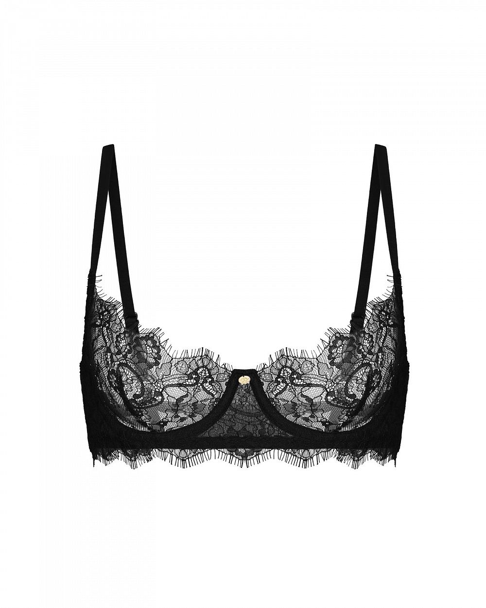 Кружевной бюстгальтер из тонкого чёрного кружева, созданный как ювелирная деталь образа. Состав: 93% полиамид, 7% спандекс