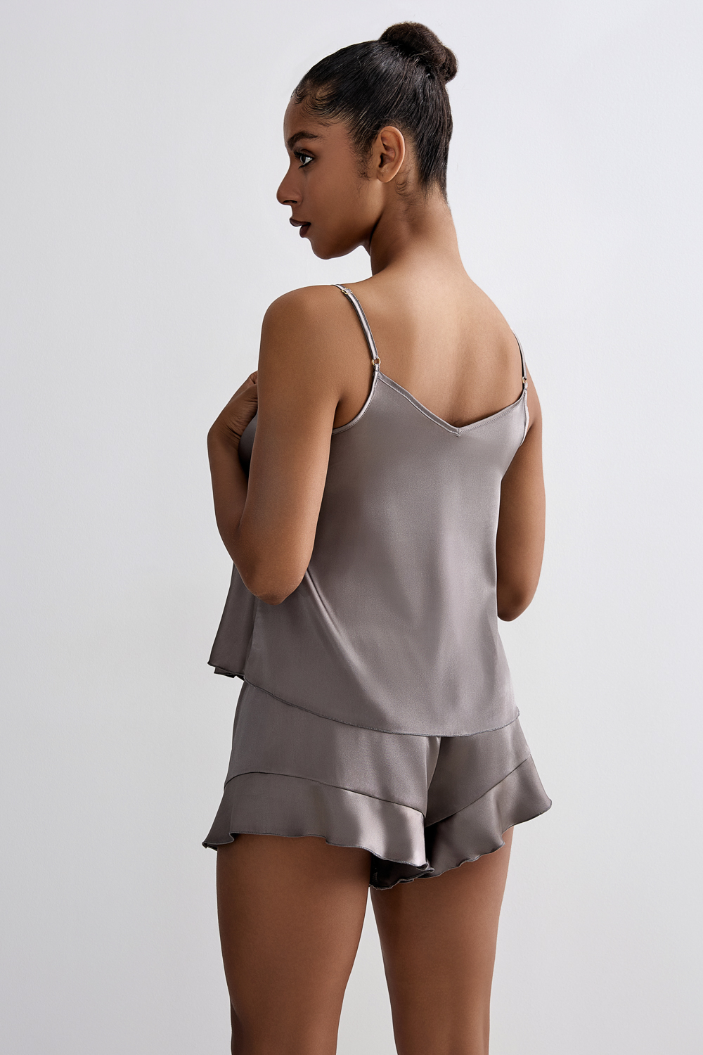 Комплект шорты и майка на бретелях из примиального атласа. Состав: 95%полиэстер 5%спандекс