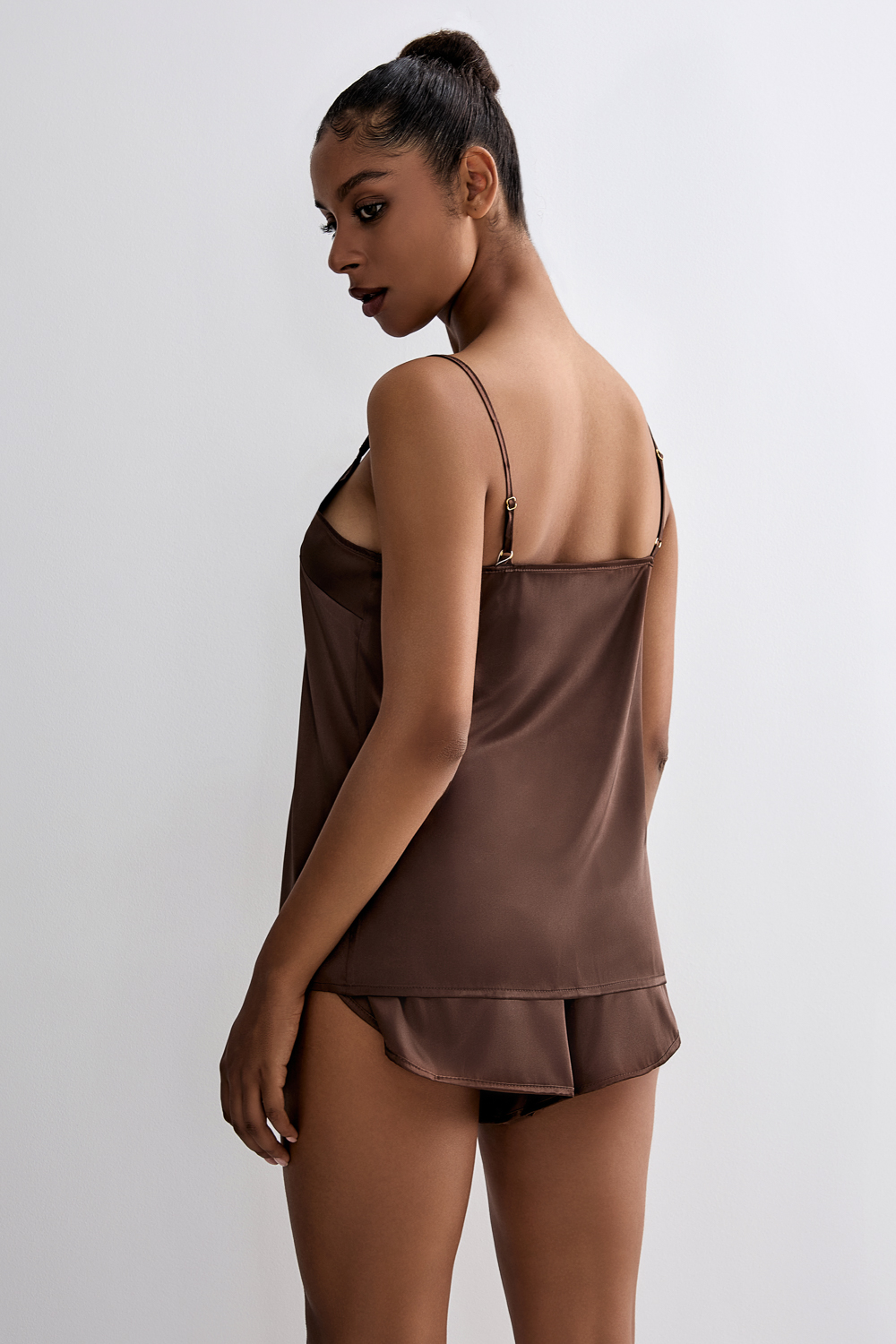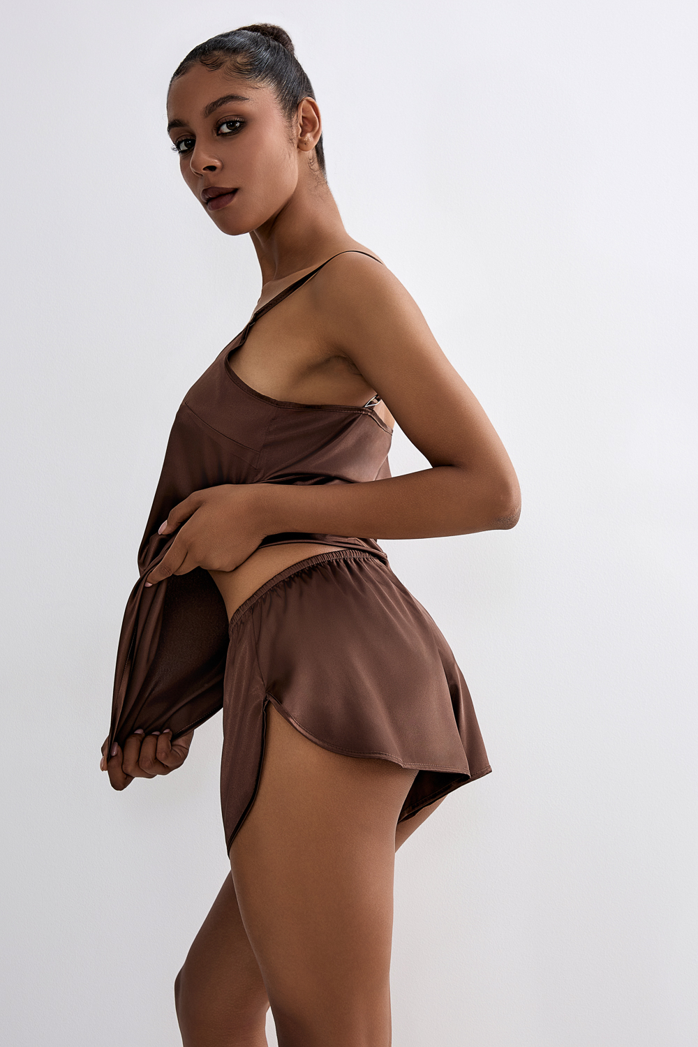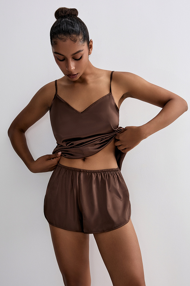 Комплект шорты и майка на бретелях из примиального атласа. Состав: 95%полиэстер 5%спандекс