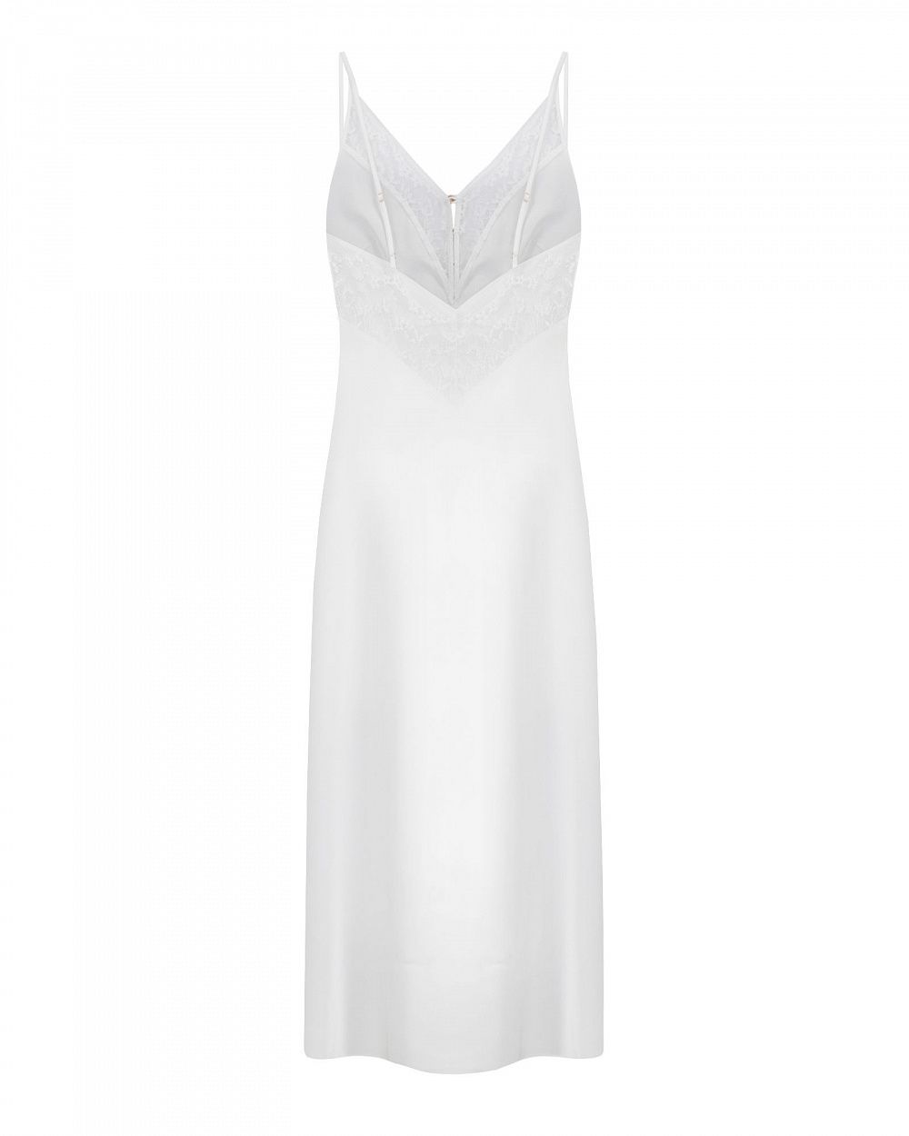комбинация длины миди, выполненная из струящегося чёрного атласа, который мягко обтекает силуэт и создаёт утончённый, гладкий блеск. Верх оформлен глубоким V-вырезом, украшенным тонким цветочным кружевом — оно добавляет образу лёгкой пикантности и графичности. Состав: 95% полиэстер, 5% спандекс