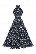 Воздушное платье миди, в котором сочетаются женственность и динамика движения. Верх с воротником-халтер изящно открывает плечи и подчеркивает линию шеи, создавая утонченный силуэт. Приталенная линия талии плавно переходит в расклешенную юбку, которая красиво раскрывается в движении. Цветочный принт добавляет образу свежести и романтичного настроения, делая модель универсальной для дневных выходов и особых случаев. Идеальное платье для летнего гардероба, отпусков и легких вечерних образов. Состав: 100% полиэстер, подкладка 97% полиэстер, 3% эластан