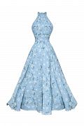 Воздушное платье миди, в котором сочетаются женственность и динамика движения. Верх с воротником-халтер изящно открывает плечи и подчеркивает линию шеи, создавая утонченный силуэт. Приталенная линия талии плавно переходит в расклешенную юбку, которая красиво раскрывается в движении. Цветочный принт добавляет образу свежести и романтичного настроения, делая модель универсальной для дневных выходов и особых случаев. Идеальное платье для летнего гардероба, отпусков и легких вечерних образов. Состав: 100% полиэстер, подкладка 97% полиэстер, 3% эластан