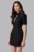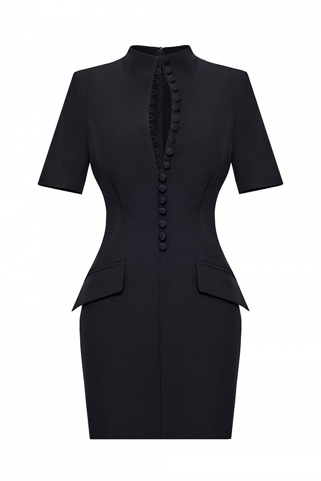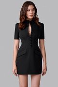 Приталенная линия подчёркивает талию, а воротник-стойка и вертикальный ряд декоративных пуговиц добавляют образу графичность. Короткий рукав делает модель универсальной для разных сезонов. Лаконичные клапаны карманов завершают аккуратный, безупречный tailoring. Подходит как для вечерних выходов, так и для элегантного городского образа.. Состав: 72% полиэстер, 23% вискоза, 5% эластан, Подклад 95% полиэстер, 5% эластан