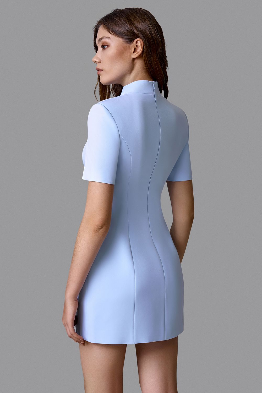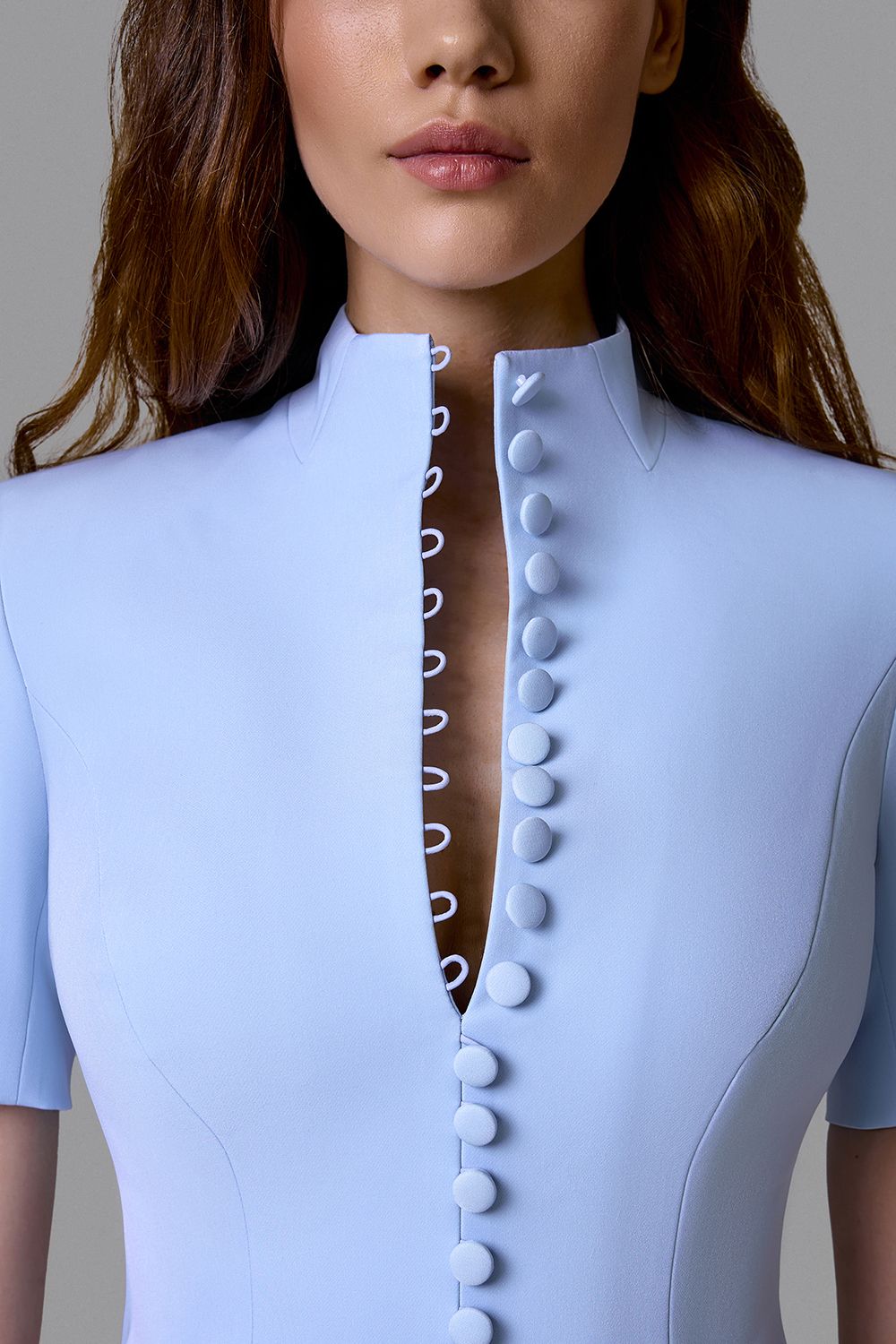 Приталенная линия подчёркивает талию, а воротник-стойка и вертикальный ряд декоративных пуговиц добавляют образу графичность. Короткий рукав делает модель универсальной для разных сезонов. Лаконичные клапаны карманов завершают аккуратный, безупречный tailoring. Подходит как для вечерних выходов, так и для элегантного городского образа.. Состав: 72% полиэстер, 23% вискоза, 5% эластан, Подклад 95% полиэстер, 5% эластан