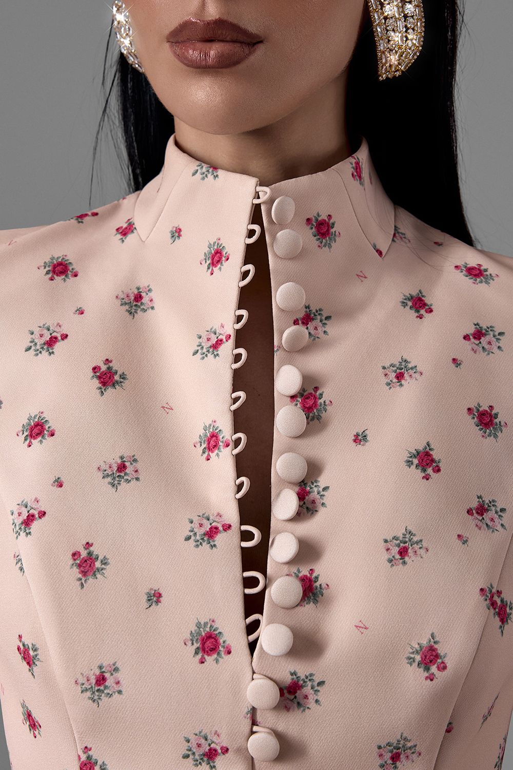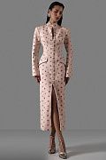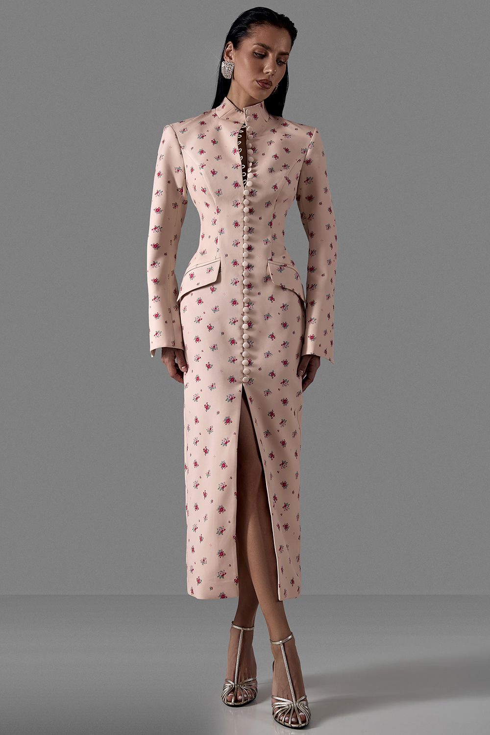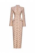 Платье-футляр с архитектурным силуэтом, подчёркивающим линию талии и фигуру. Модель выполнена из плотной костюмной ткани с эксклюзивным цветочным принтом, который добавляет образу утончённость и характер