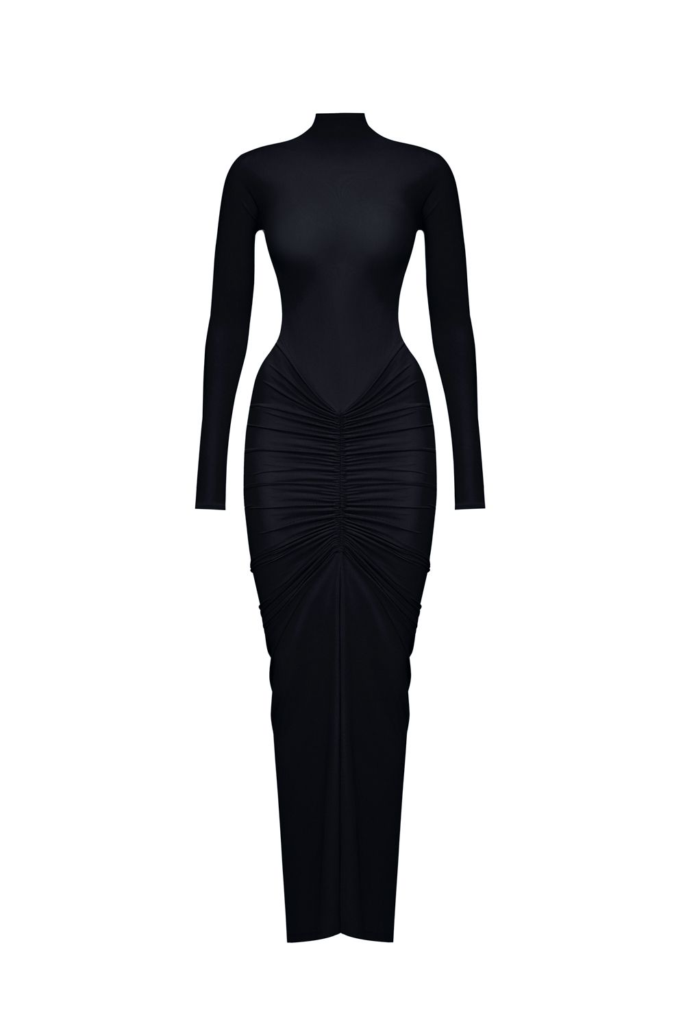 Облегающее платье длины макси с акцентной драпировкой и выразительным узлом на линии бёдер. Изделие выполнено из эластичного материала, который подчёркивает плавные линии силуэта. Встроенное боди дарит уверенность и комфорт при движении, обеспечивая идеальную посадку. Состав: 90% полиэстер, 10% спандекс.