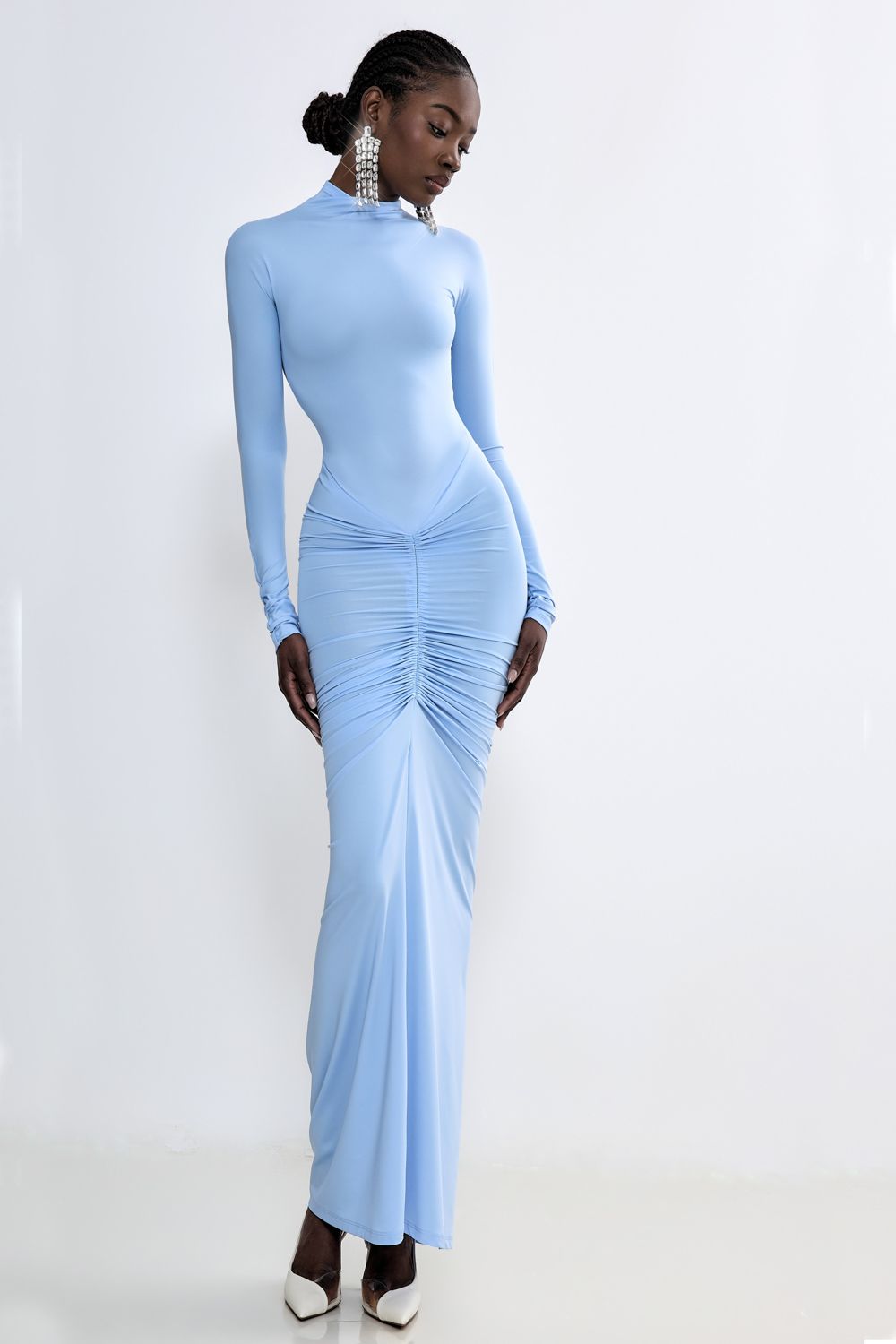 Облегающее платье длины макси с акцентной драпировкой и выразительным узлом на линии бёдер. Изделие выполнено из эластичного материала, который подчёркивает плавные линии силуэта. Встроенное боди дарит уверенность и комфорт при движении, обеспечивая идеальную посадку. Состав: 90% полиэстер, 10% спандекс.