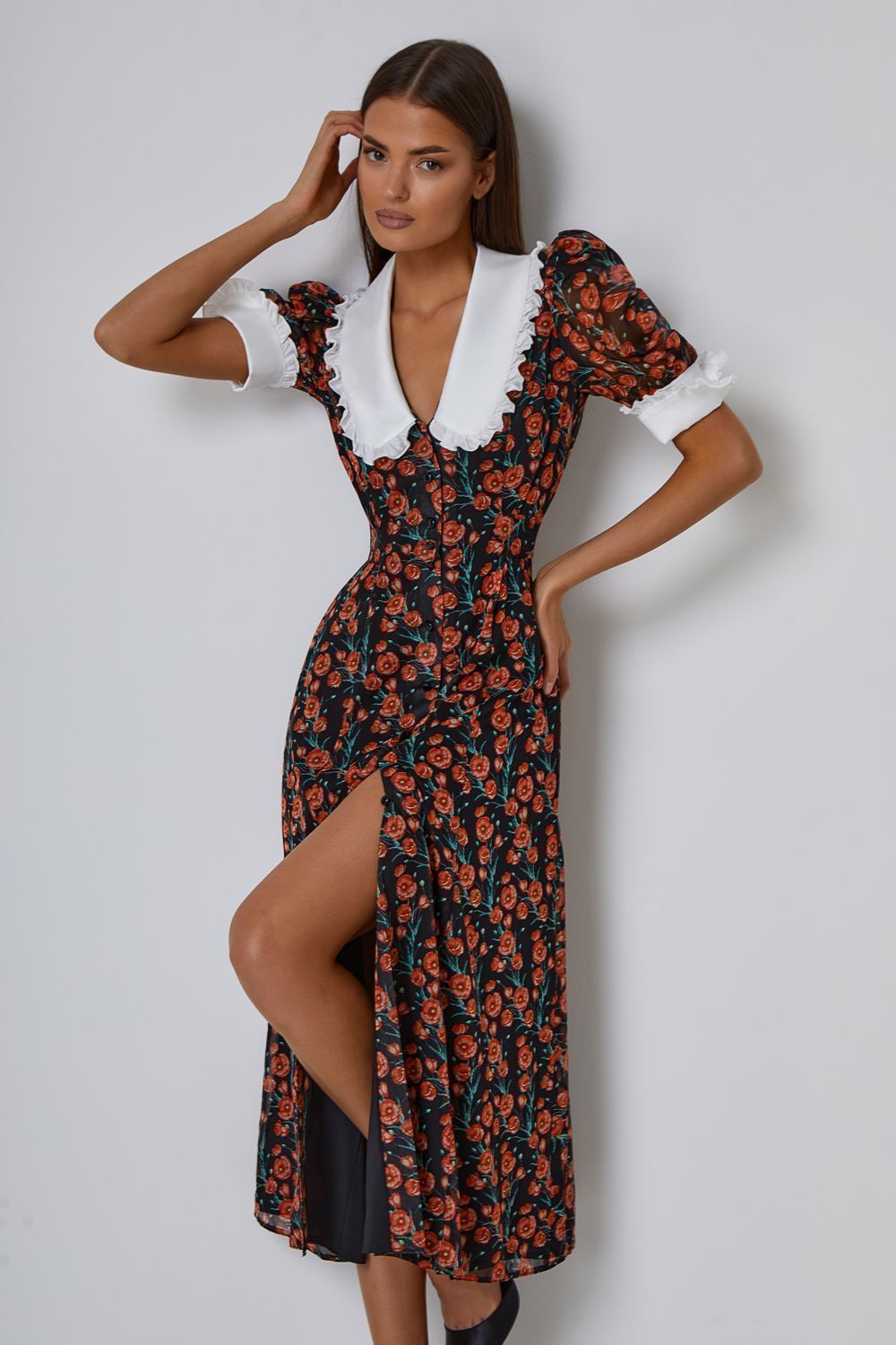 Платье с авторским цветочным принтом - утончённая модель, в которой сочетаются женственность и выразительный дизайн. Приталенный силуэт подчёркивает фигуру, а мягкая линия юбки создаёт лёгкое, плавное движение при каждом шаге. Акцентный воротник с контрастной отделкой и объёмные рукава добавляют образу романтичности и делают модель по-настоящему запоминающейся. Авторский принт придаёт изделию уникальность - такой рисунок не повторяется и делает платье особенным в вашем гардеробе. Идеально подойдёт как для повседневных образов, так и для особых случаев, когда хочется выглядеть элегантно и небанально. Состав: 100% полиэстер, подкладка 95% полиэстер, 5% эластан
