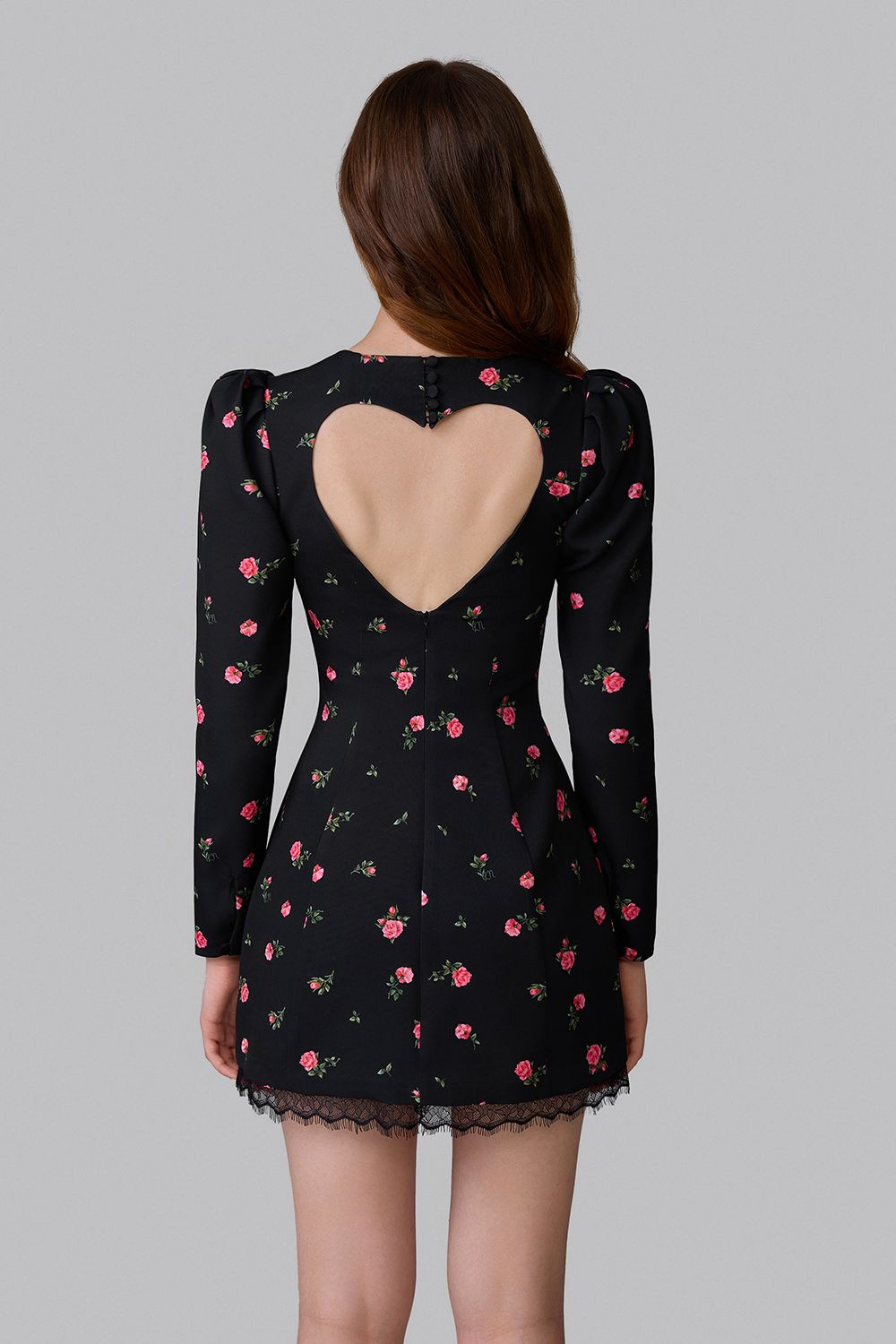 Платье мини с вырезом в форме сердца Описание Женственное мини-платье с деликатным цветочным принтом, созданное для лёгких и романтичных образов. Приталенный силуэт подчёркивает фигуру, формируя аккуратную линию талии и мягко раскрываясь к низу. Главный акцент модели — открытая спина с вырезом в форме сердца, который придаёт образу особую чувственность и делает его запоминающимся. Лаконичный верх с длинными рукавами и округлой линией горловины уравновешивает силуэт, создавая гармоничный баланс. Нижний край дополнен кружевной отделкой, добавляющей образу лёгкость и утончённость. Платье идеально подойдёт для свиданий, мероприятий и летних вечеров. Состав: 71% полиэстер, 23% вискоза, 6% эластан, Подклад 95% полиэстер 5% эластан