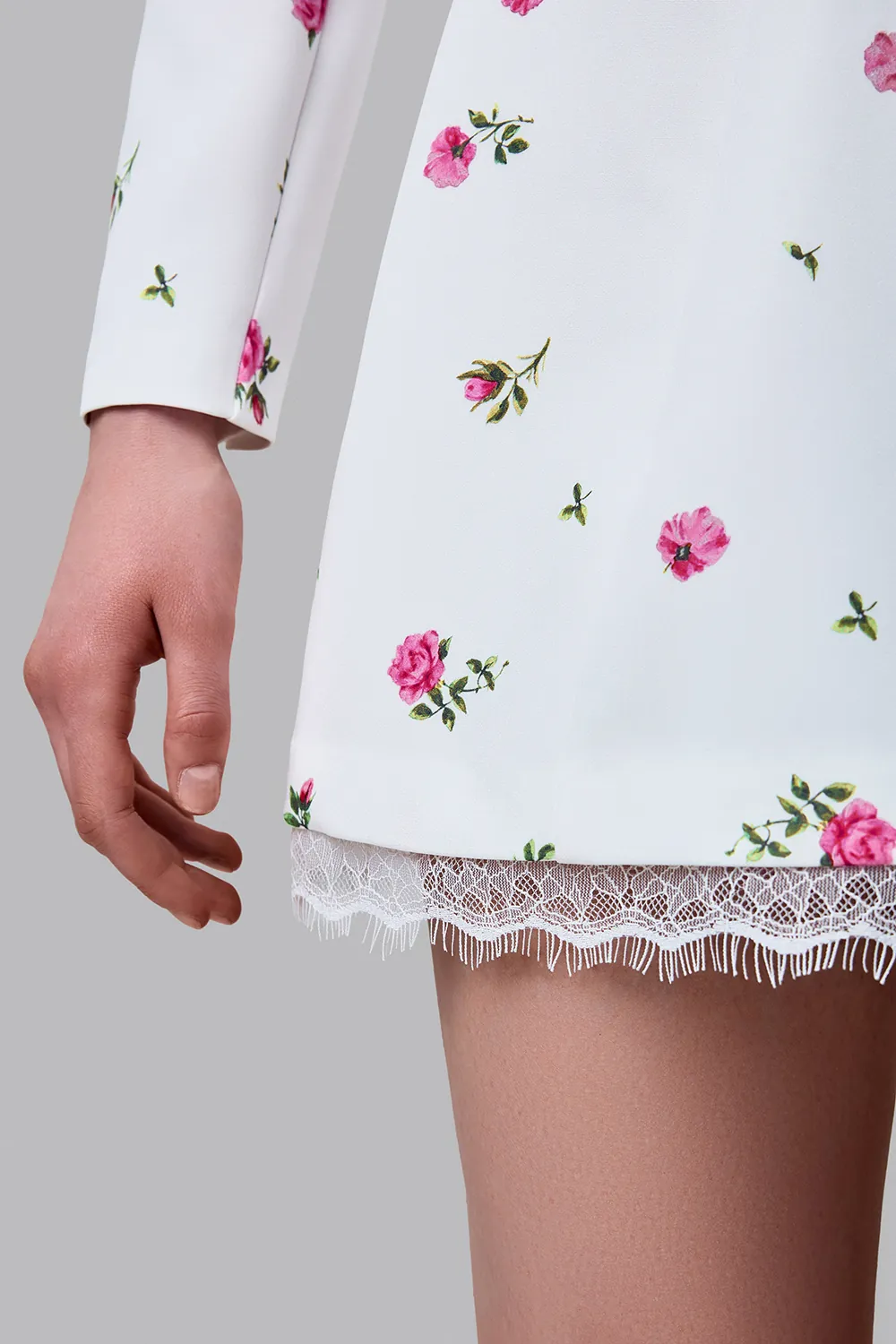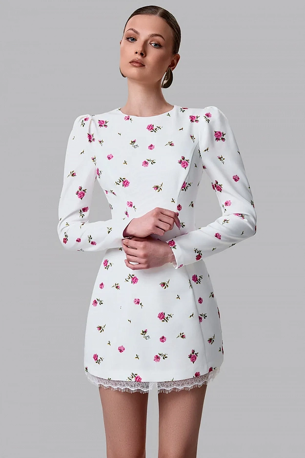 Женственное мини-платье с деликатным цветочным принтом, созданное для лёгких и романтичных образов. Приталенный силуэт подчёркивает фигуру, формируя аккуратную линию талии и мягко раскрываясь к низу. Главный акцент модели — открытая спина с вырезом в форме сердца, который придаёт образу особую чувственность и делает его запоминающимся. Нижний край дополнен кружевной отделкой, добавляющей образу лёгкость и утончённость. Длина платья по спинке (размер: S): 80 см. с кружевом. Состав: 71% полиэстер, 23% вискоза, 6% эластан, Подклад 95% полиэстер 5% эластан