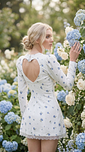 Платье мини с вырезом в форме сердца Описание Женственное мини-платье с деликатным цветочным принтом, созданное для лёгких и романтичных образов. Приталенный силуэт подчёркивает фигуру, формируя аккуратную линию талии и мягко раскрываясь к низу. Главный акцент модели — открытая спина с вырезом в форме сердца, который придаёт образу особую чувственность и делает его запоминающимся. Лаконичный верх с длинными рукавами и округлой линией горловины уравновешивает силуэт, создавая гармоничный баланс. Нижний край дополнен кружевной отделкой, добавляющей образу лёгкость и утончённость. Платье идеально подойдёт для свиданий, мероприятий и летних вечеров. Состав: 71% полиэстер, 23% вискоза, 6% эластан, Подклад 95% полиэстер 5% эластан