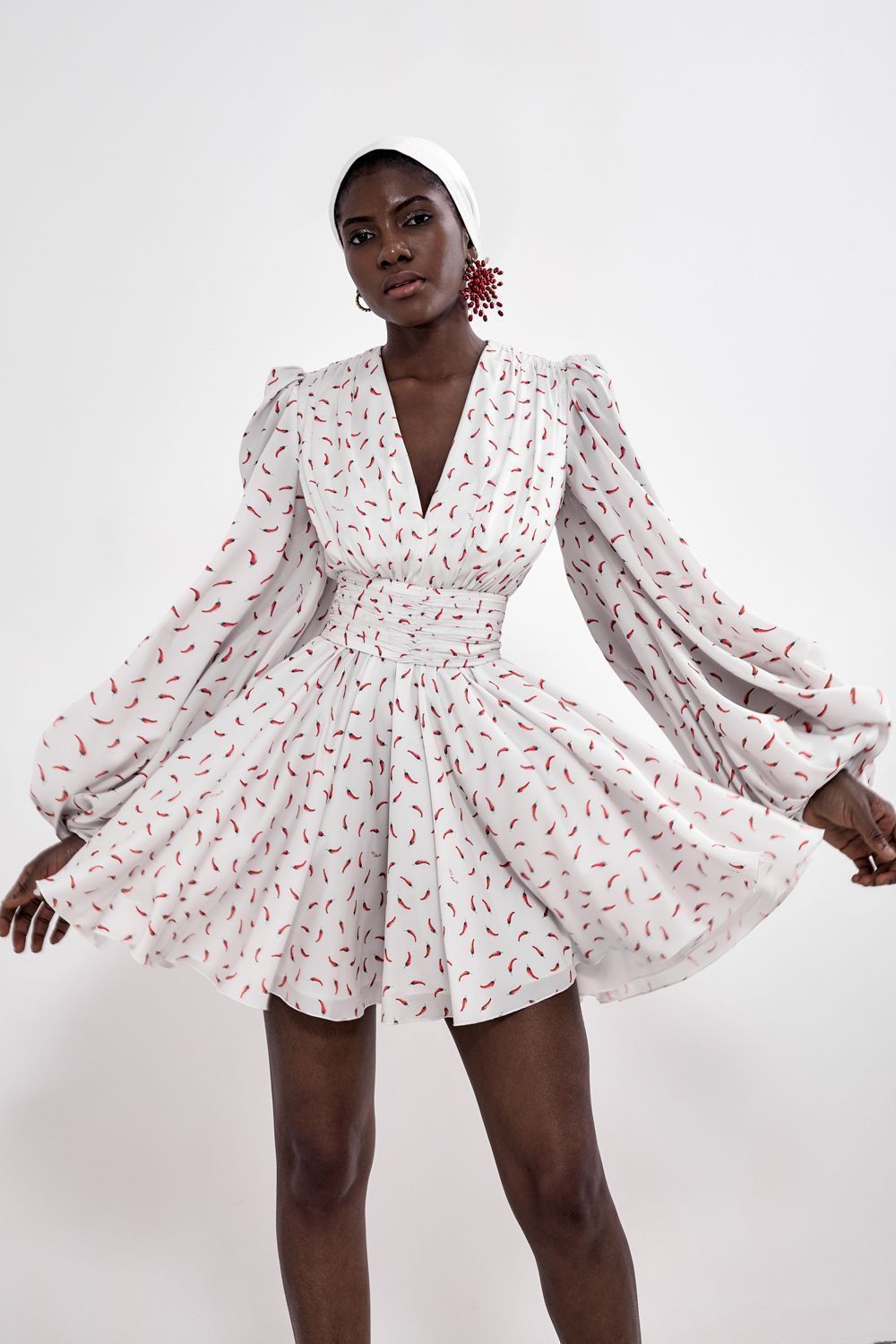 Платье мини с пышными рукавами