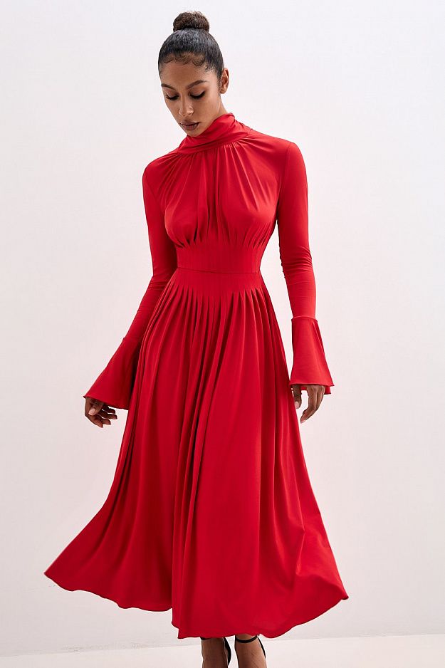 Платье миди с драпировкой и высоким воротом