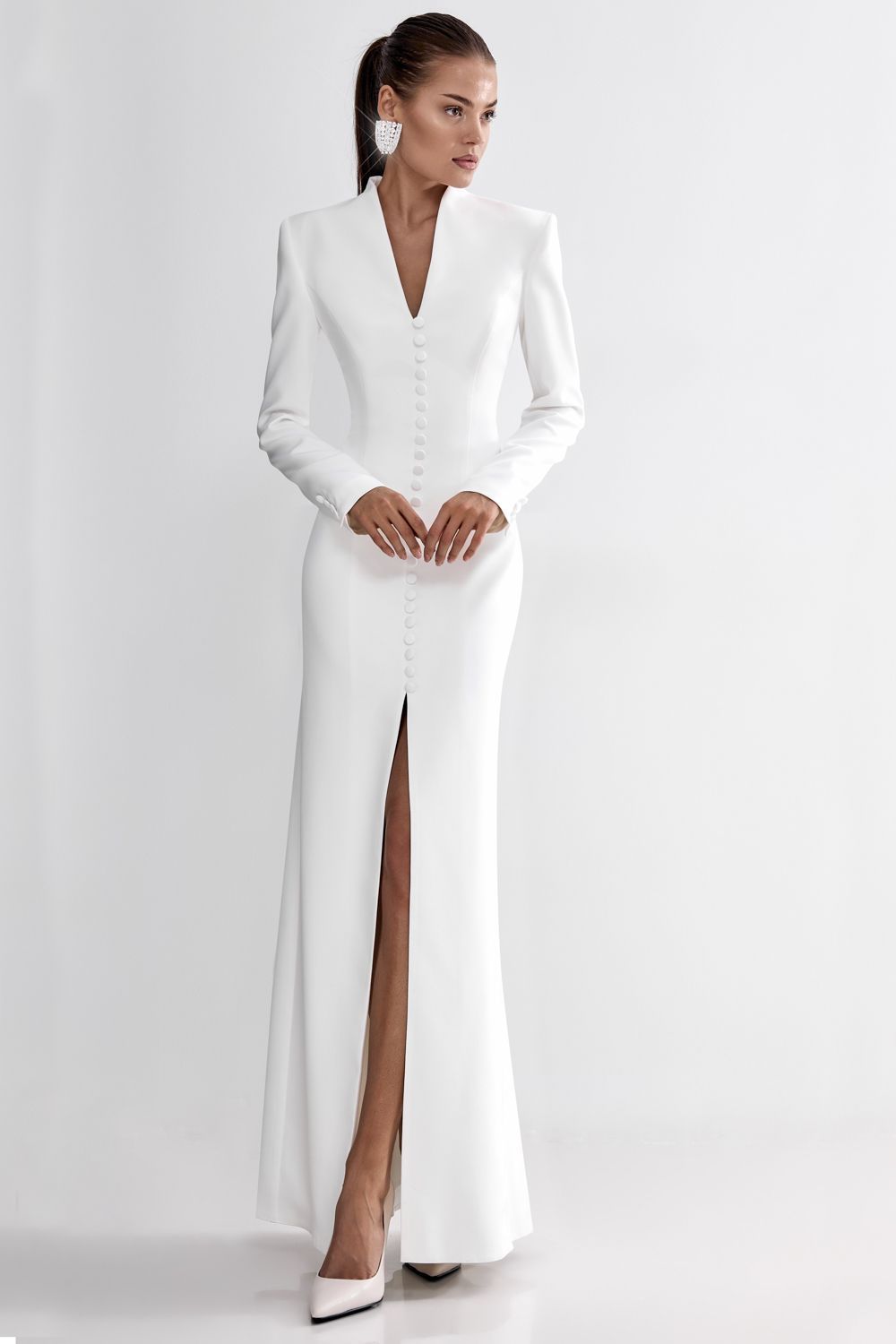 Платье в пол с фигурным вырезом и пуговицами