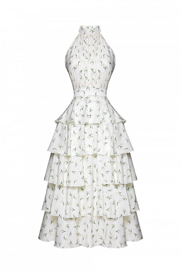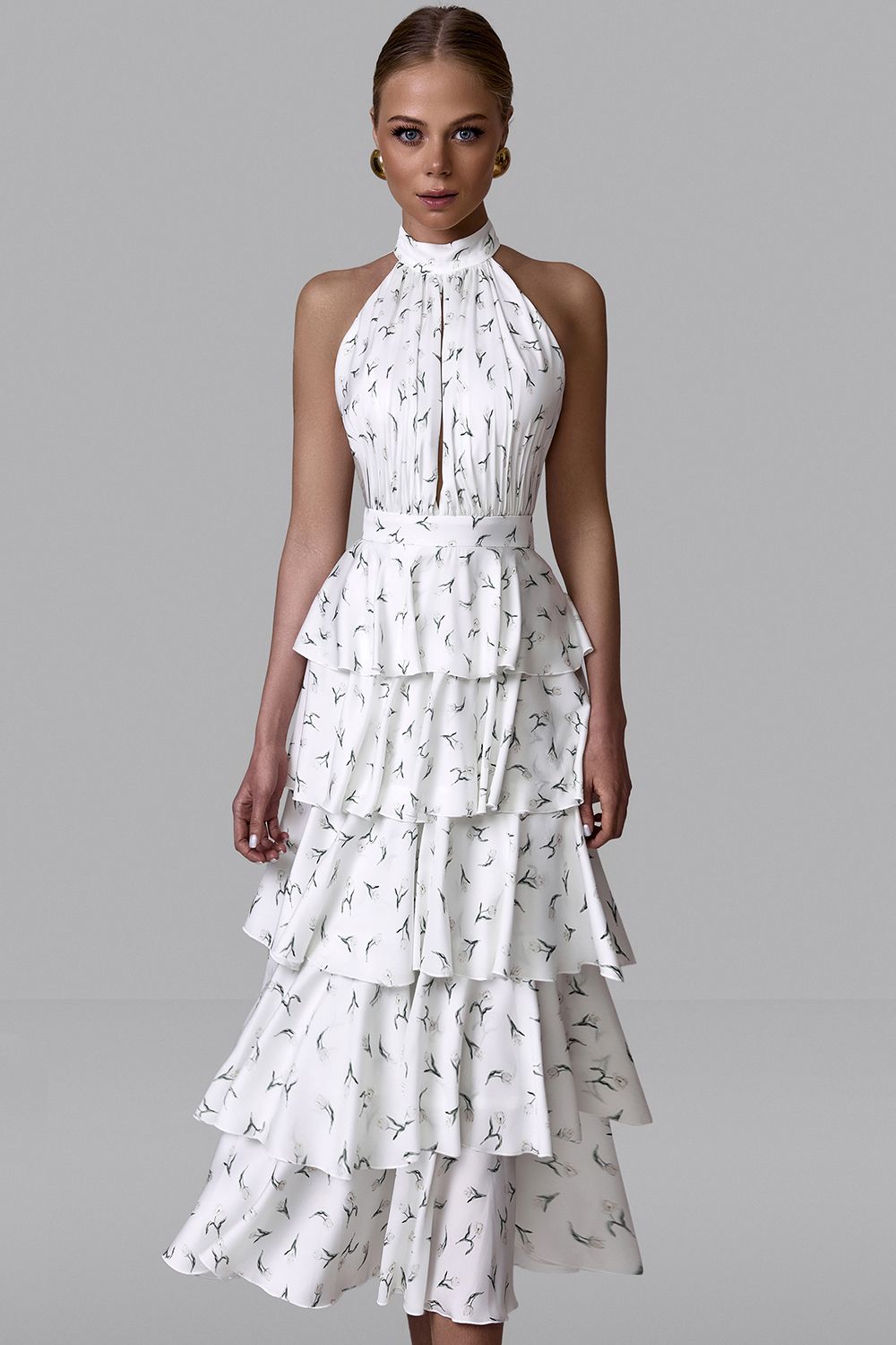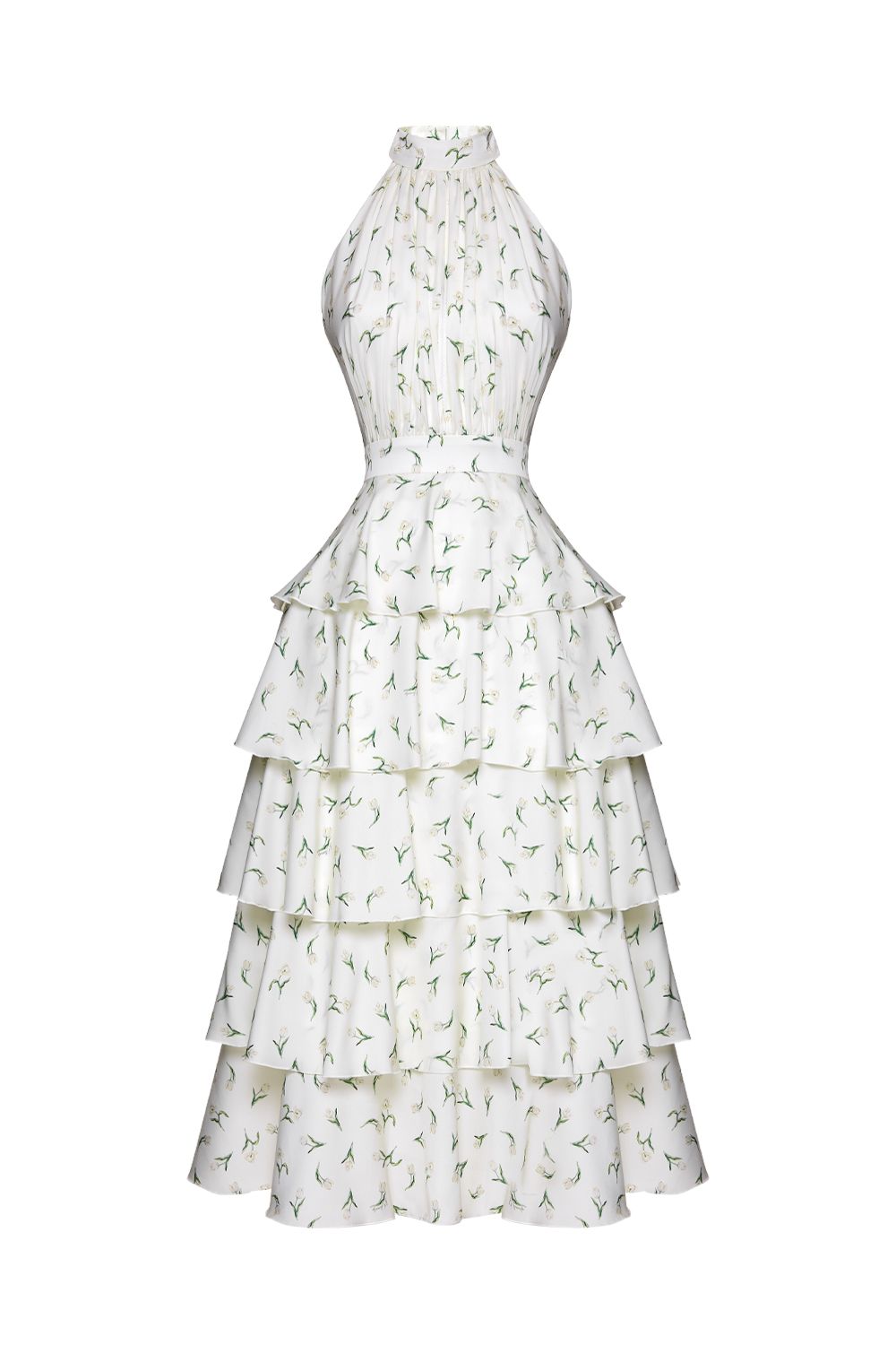 Платье миди с ярусной юбкой и эксклюзивным принтом