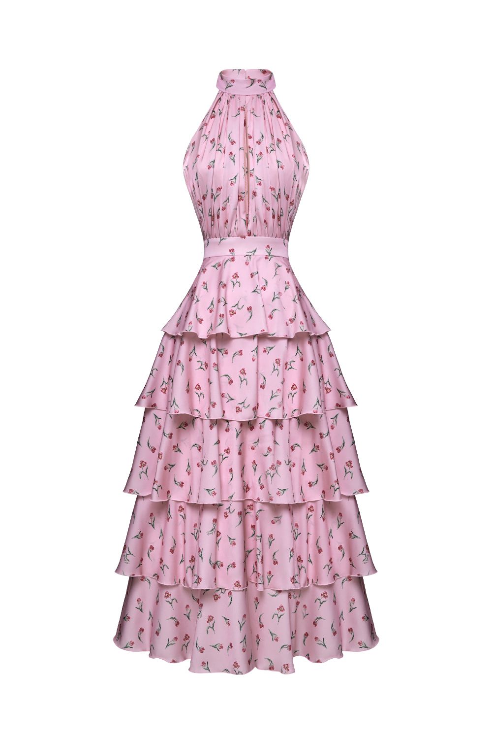 Платье миди с ярусной юбкой и эксклюзивным принтом