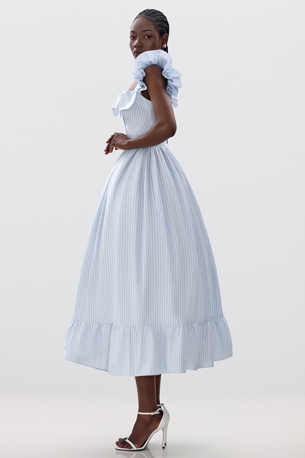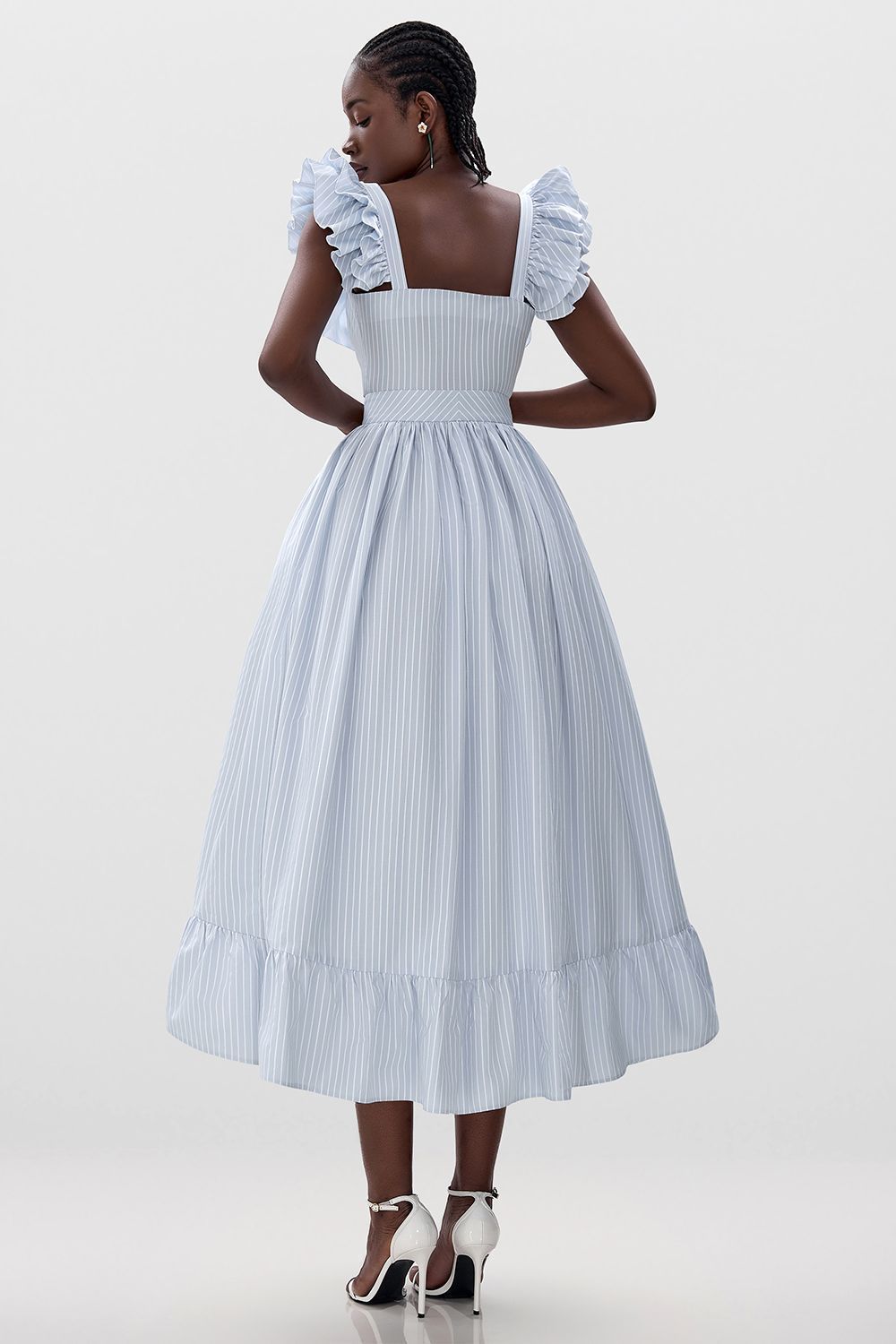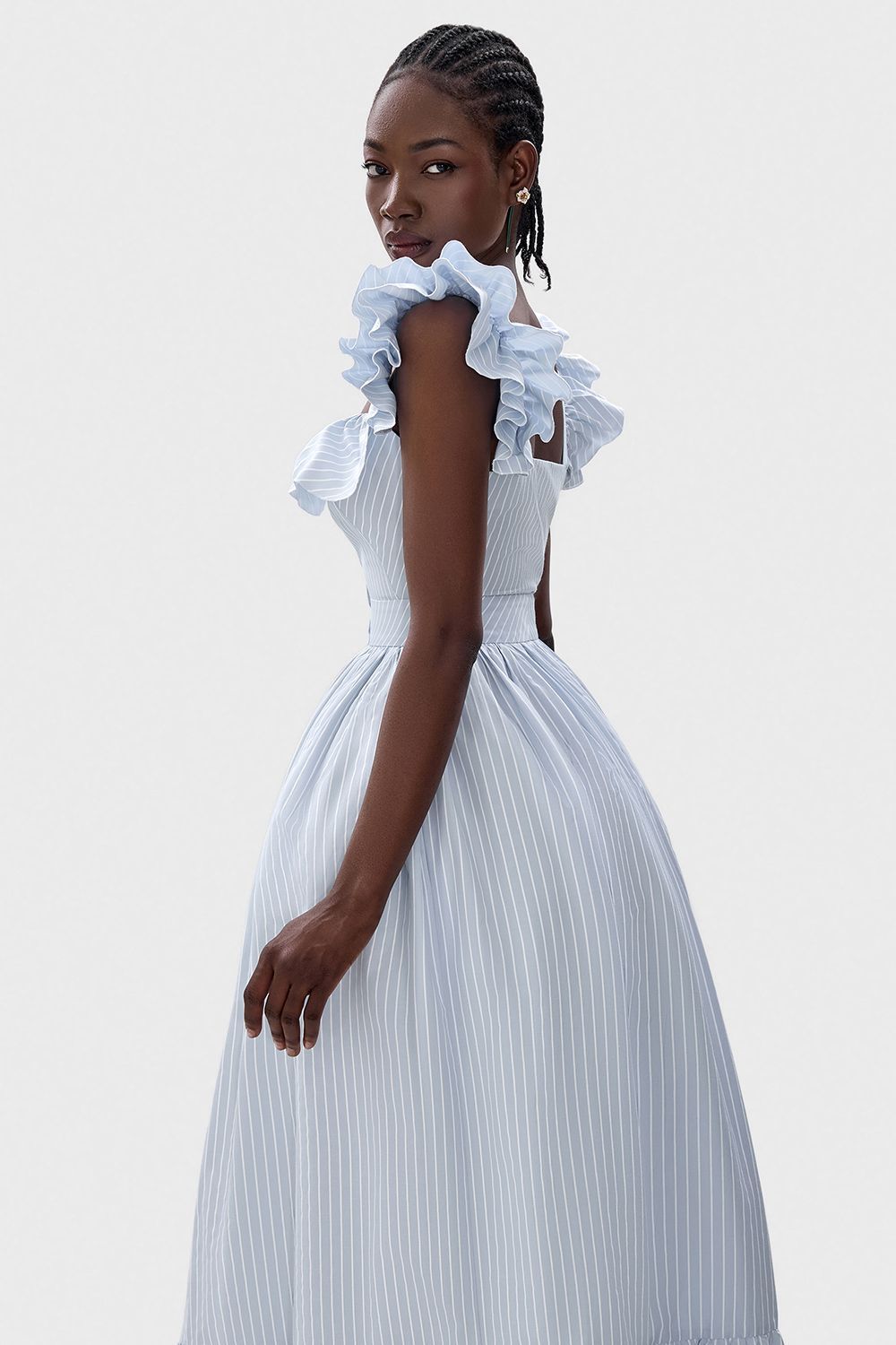 Сарафан на широких бретелях с оборками на груди, застегивается на пуговицы спереди. Широкий втачной пояс, идеально подчеркнет линию талии. Подол с оборками. На модели размер S. Длина по спинке 108 см. Состав: 60% полиэстер, 40% хлопок