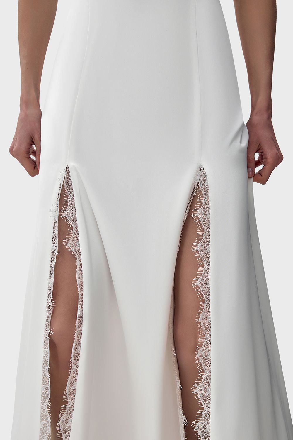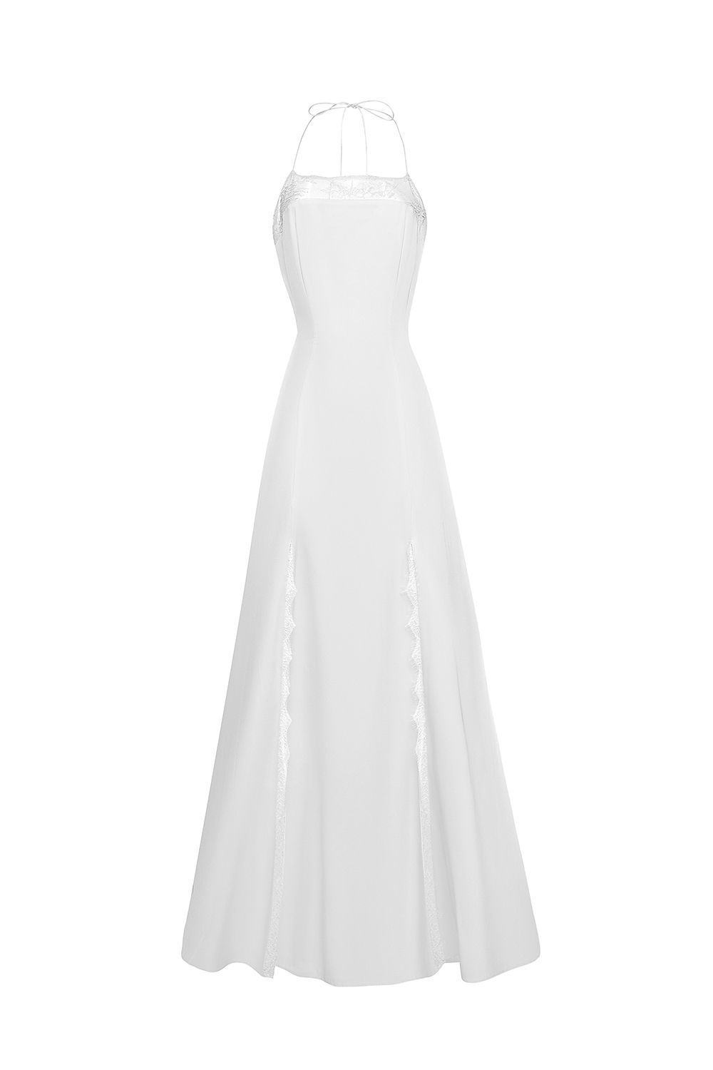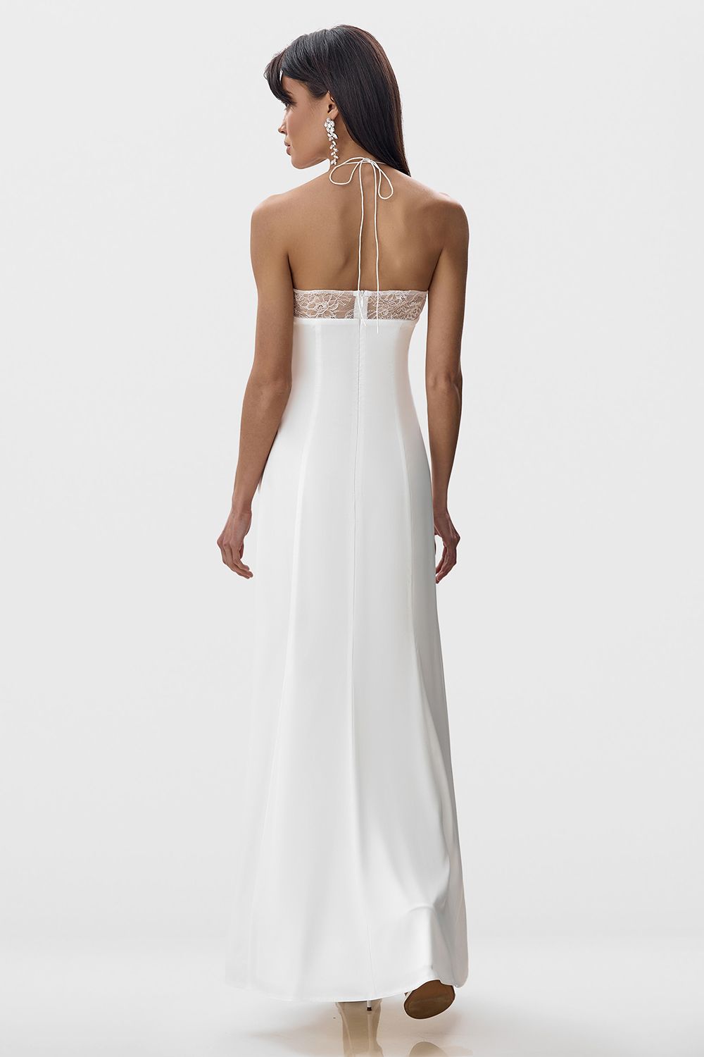 Утончённое платье миди на тонких бретелях с кружевной отделкой, акцентированной в зоне лифа и по бокам юбки. Приталенный силуэт мягко подчёркивает фигуру, а разрезы придают образу лёгкость и изысканную женственность. Универсальная модель — для особого случая или летнего выхода. Состав:Ткань: 97% полиэстер, 3% спандекс Подкладка: 97% полиэстер, 3% эластан