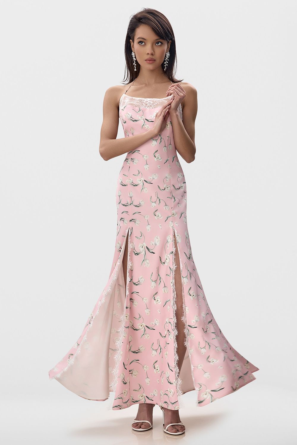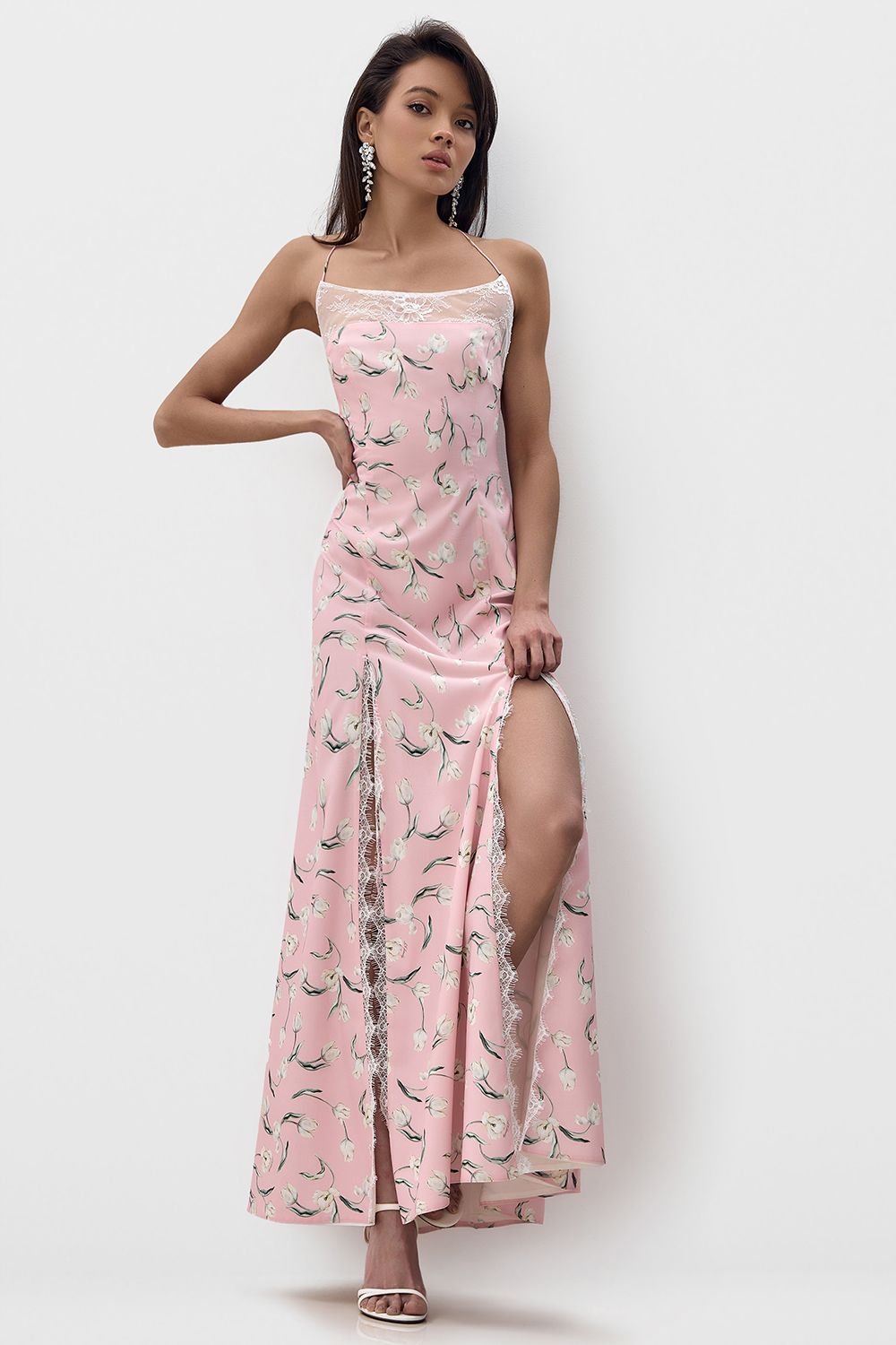Утончённое платье миди на тонких бретелях с кружевной отделкой, акцентированной в зоне лифа и по бокам юбки. Приталенный силуэт мягко подчёркивает фигуру, а разрезы придают образу лёгкость и изысканную женственность. Универсальная модель — для особого случая или летнего выхода. Состав:Ткань: 97% полиэстер, 3% спандекс Подкладка: 97% полиэстер, 3% эластан