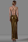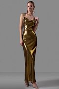 Эффектное прилегающее силуэтное платье с мягкой драпировкой по лифу и открытой спиной, украшенной тонкими перекрещивающимися бретелями. Легкая ткань с зеркальным блеском повторяет линии тела и красиво играет при движении. Состав: 100% полиэстер, подкладка 97% полиэстер, 3% эластан