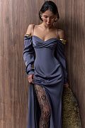 Элегантное платье в пол с открытыми плечами и длинными рукавами. Классический приталенный крой с акцентом на стройный силуэт и высоким разрезом спереди. Мягкая ткань с легким блеском изысканно драпируется и подчеркивает фигуру. Идеально сочетается с палантином из той же ткани, который продается отдельно (арт. 98128). Основная ткань: 97% полиэстер, 3% спандекс Подкладка: 97% полиэстер, 3% эластан