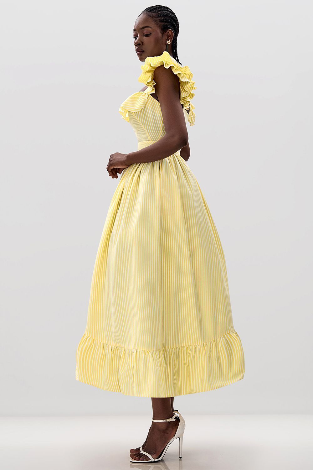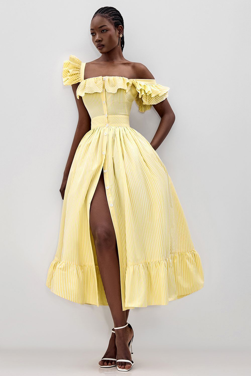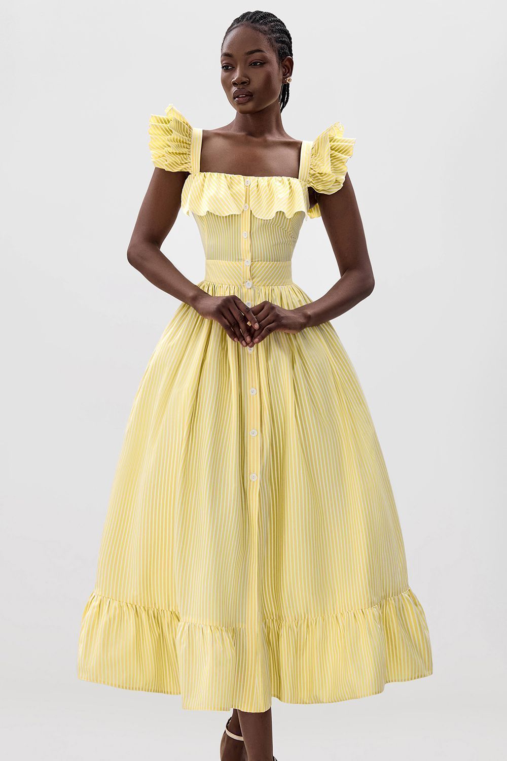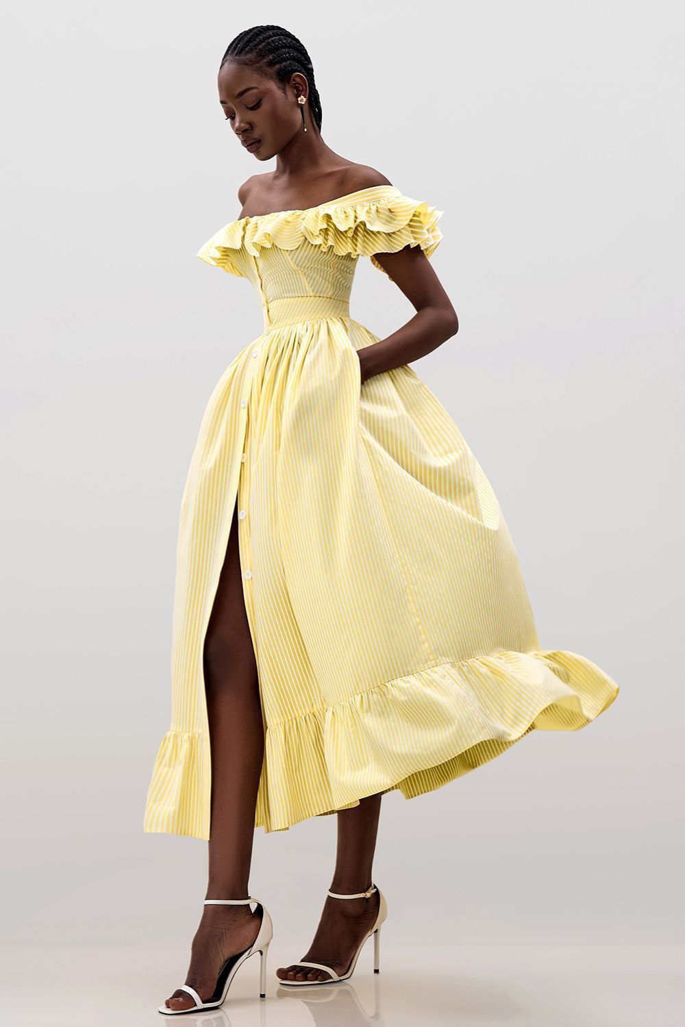 Сарафан на широких бретелях с оборками на груди, застегивается на пуговицы спереди. Широкий втачной пояс, идеально подчеркнет линию талии. Подол с оборками. На модели размер S. Длина по спинке 108 см. Состав: 60% полиэстер, 40% хлопок