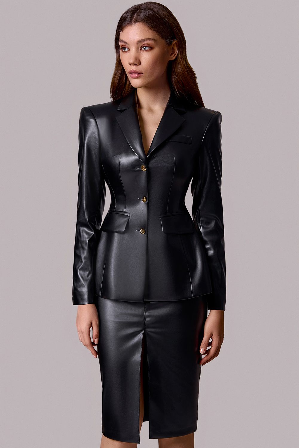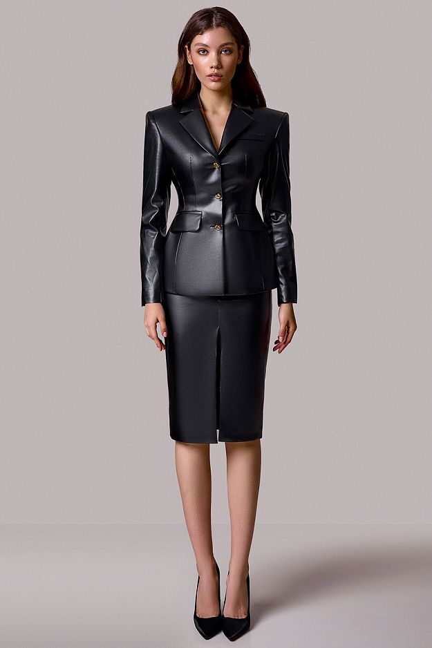 Юбка-карандаш из экокожи — акцентная модель с выразительной фактурой и чистым силуэтом. Облегающая посадка подчеркивает фигуру, а разрез спереди добавляет свободу движения и визуально вытягивает силуэт. Гладкая поверхность материала создает эффектный контраст с базовыми элементами гардероба. Высокая посадка формирует чёткую линию талии и усиливает архитектуру образа. Идеальна как для вечерних выходов, так и для стилизованных повседневных сочетаний.. Состав: 100% полиэстер, подкладка 95% полиэстер, 5% эластан
