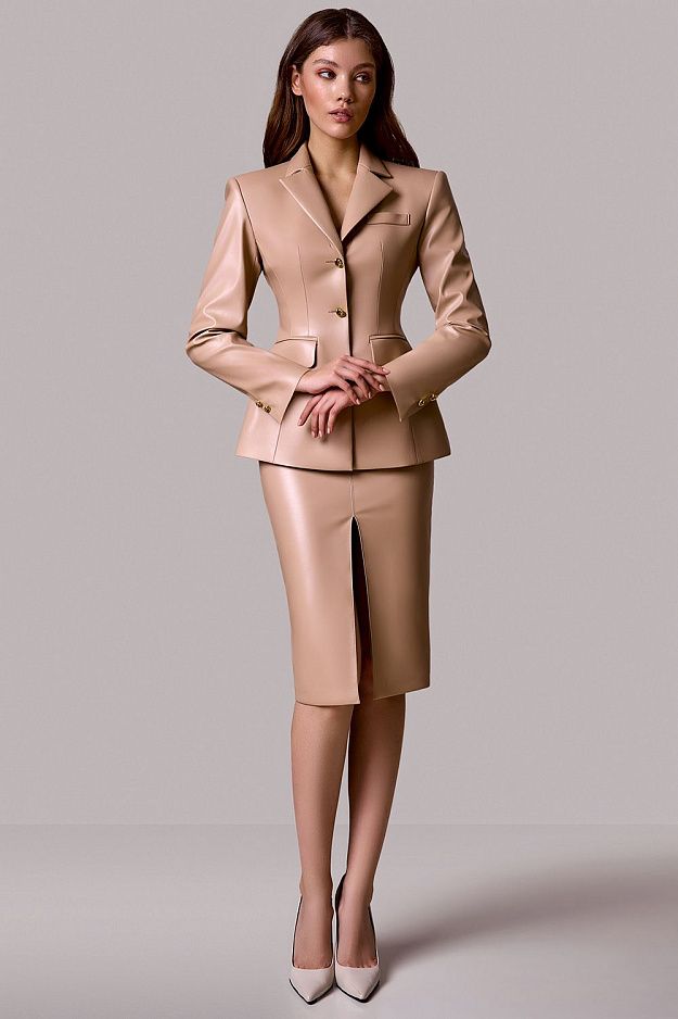Юбка-карандаш из экокожи — акцентная модель с выразительной фактурой и чистым силуэтом. Облегающая посадка подчеркивает фигуру, а разрез спереди добавляет свободу движения и визуально вытягивает силуэт. Гладкая поверхность материала создает эффектный контраст с базовыми элементами гардероба. Высокая посадка формирует чёткую линию талии и усиливает архитектуру образа. Идеальна как для вечерних выходов, так и для стилизованных повседневных сочетаний.. Состав: 100% полиэстер, подкладка 95% полиэстер, 5% эластан