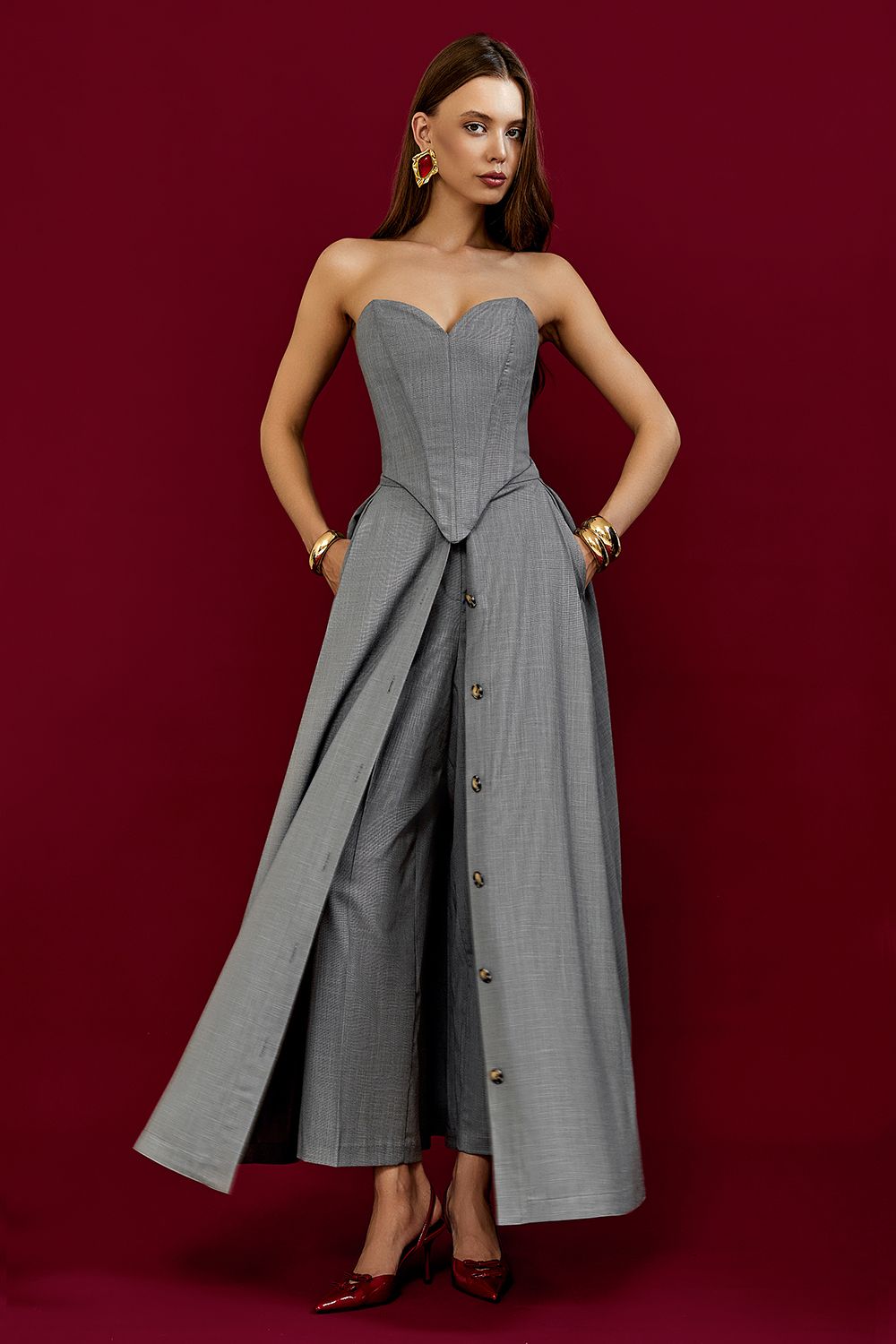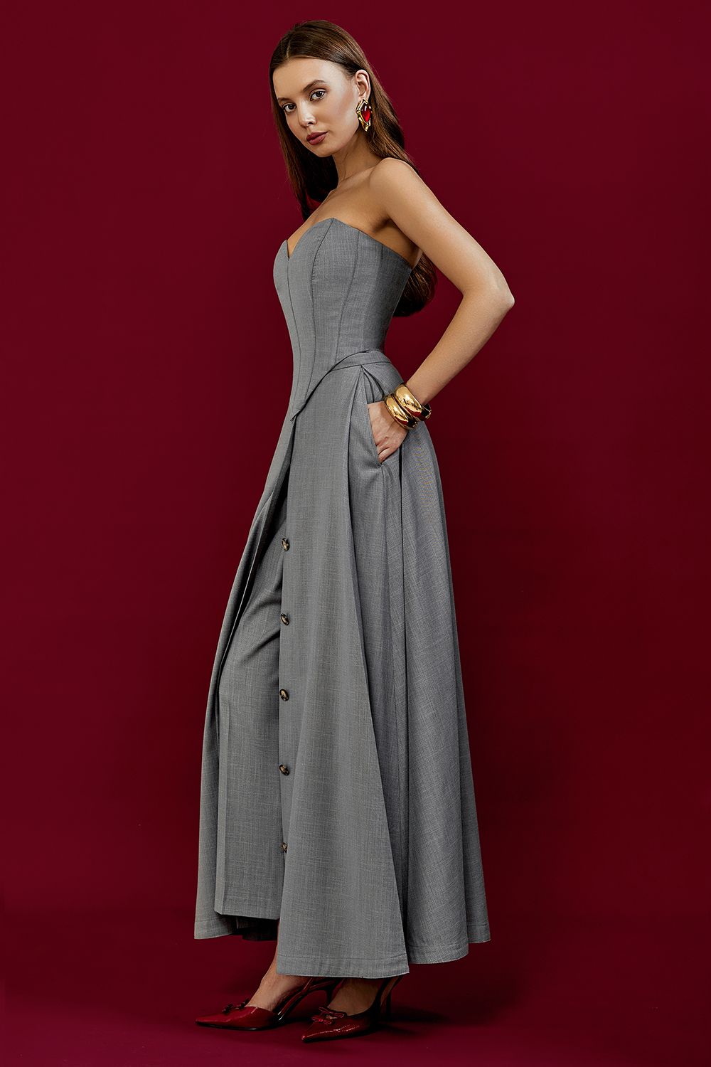 Элегантные юбка-брюки, выполненные из костюмной ткани, станут стильной альтернативой классическому платью или юбке. Модель имеет завышенную талию и акцентированный лиф с корсетной посадкой, который красиво подчёркивает силуэт. Благодаря крою клёш создаётся эффект длинной юбки, но при этом сохраняется комфорт и свобода движения брюк. Состав: 63% вискоза, 32% полиэстер, 5% эластан