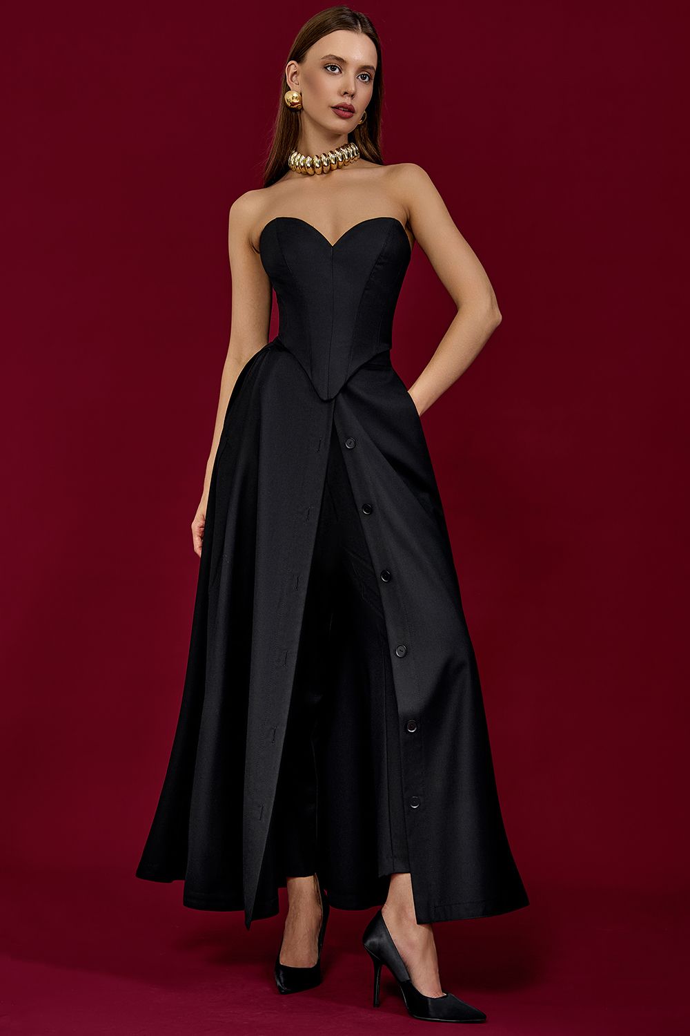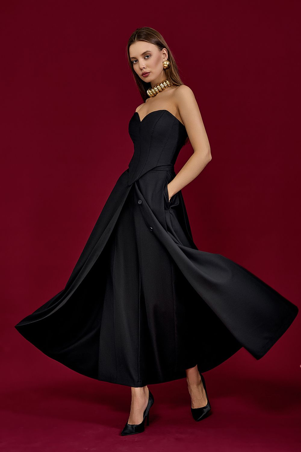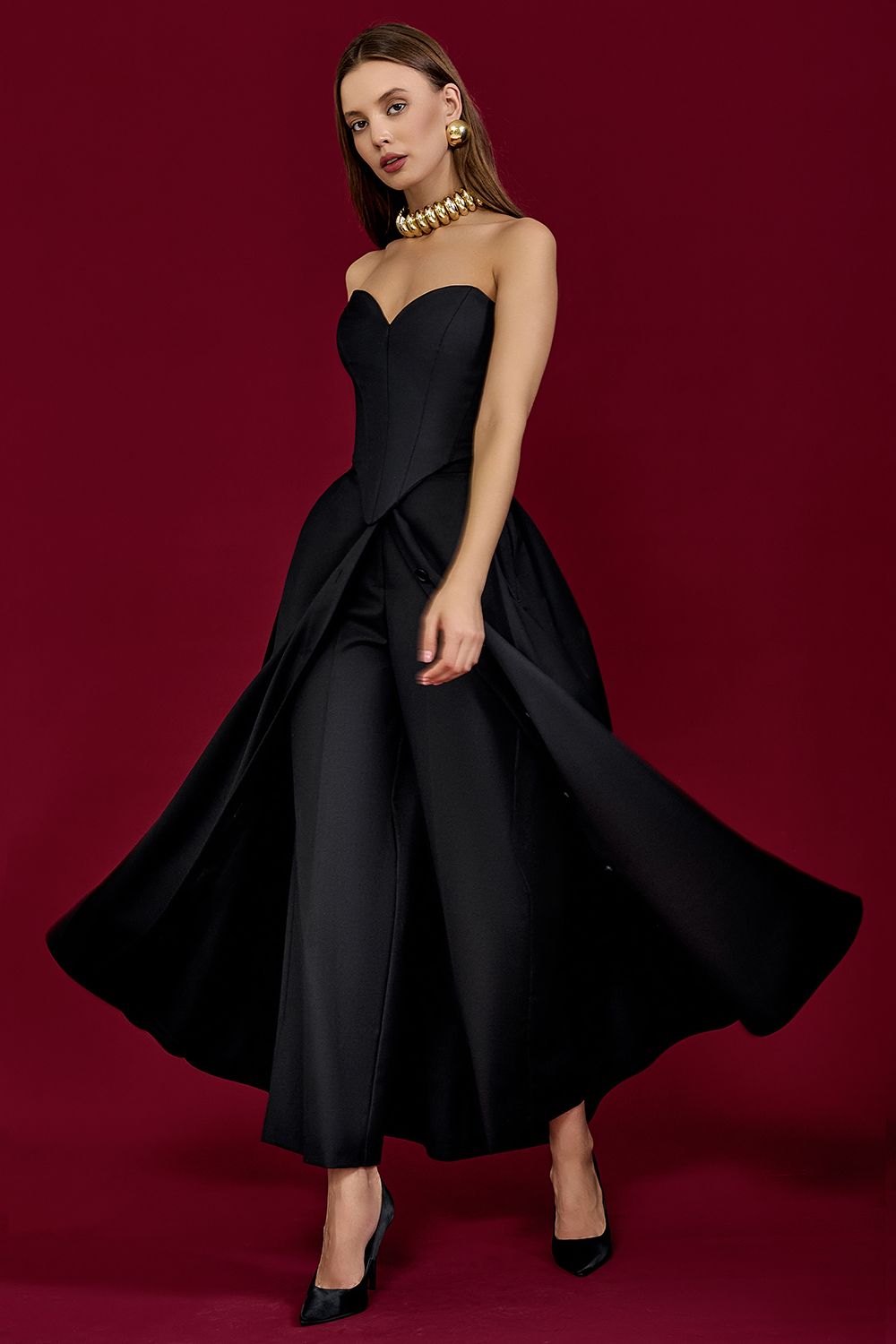 Элегантные юбка-брюки, выполненные из костюмной ткани, станут стильной альтернативой классическому платью или юбке. Модель имеет завышенную талию и акцентированный лиф с корсетной посадкой, который красиво подчёркивает силуэт. Благодаря крою клёш создаётся эффект длинной юбки, но при этом сохраняется комфорт и свобода движения брюк. Состав: 63% вискоза, 32% полиэстер, 5% эластан