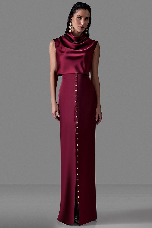 Прямая юбка макси с разрезом и золотистой линией пуговиц