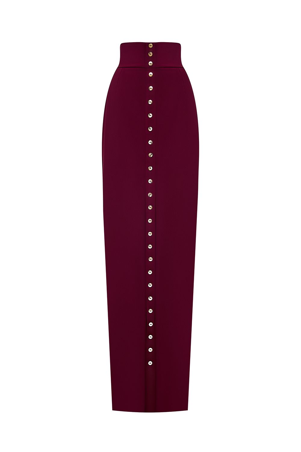 Прямая юбка макси с разрезом и золотистой линией пуговиц