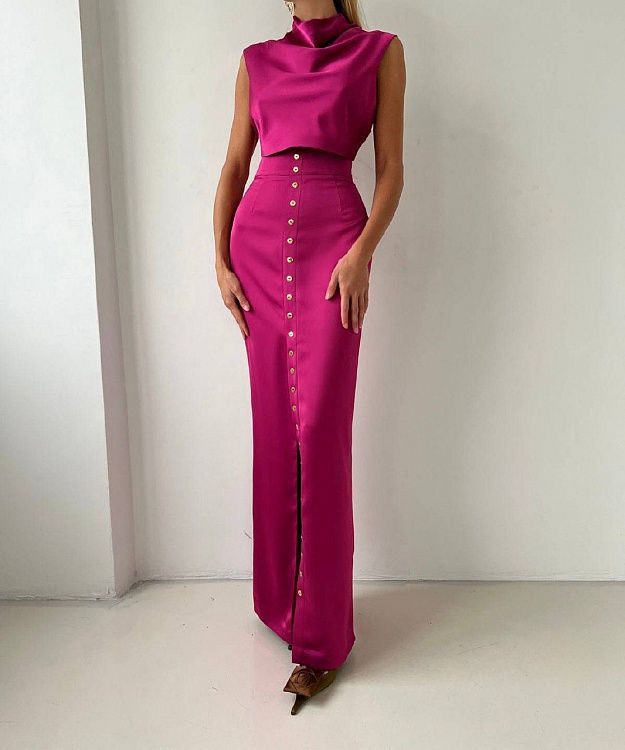 Прямая юбка макси с разрезом и золотистой линией пуговиц