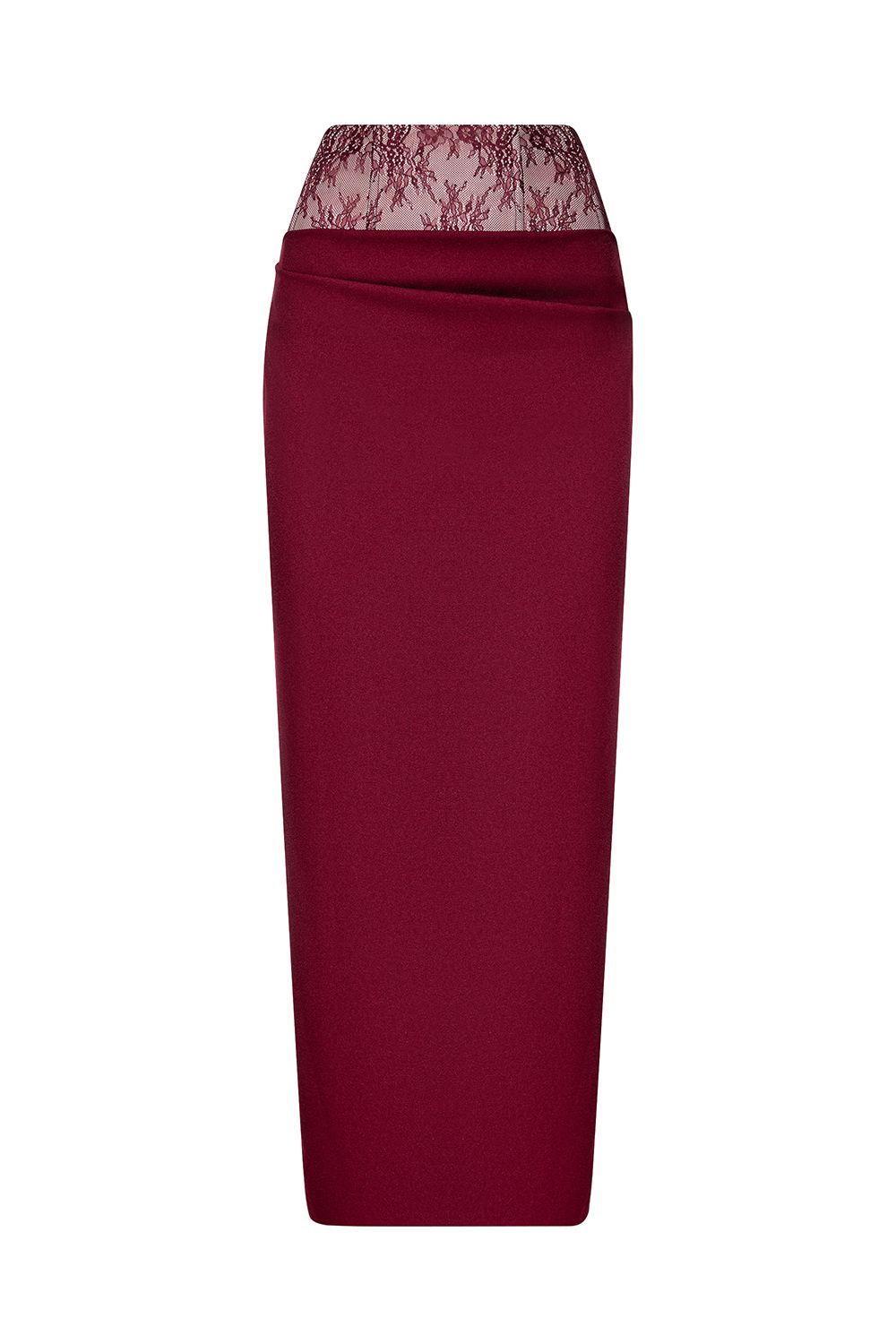 Элегантная юбка-карандаш миди, выполненная из плотного костюмного материала, формирует безупречный силуэт и подчёркивает линию бёдер. Главный акцент - широкая прозрачная вставка из деликатного кружева по линии талии, создающая эффект визуального «песочных часов» и гармонирующая с корсетной частью комплекта. Состав: 95% полиэстер, 5% спандекс, Подкладка 97% полиэстер, 3% спандекс