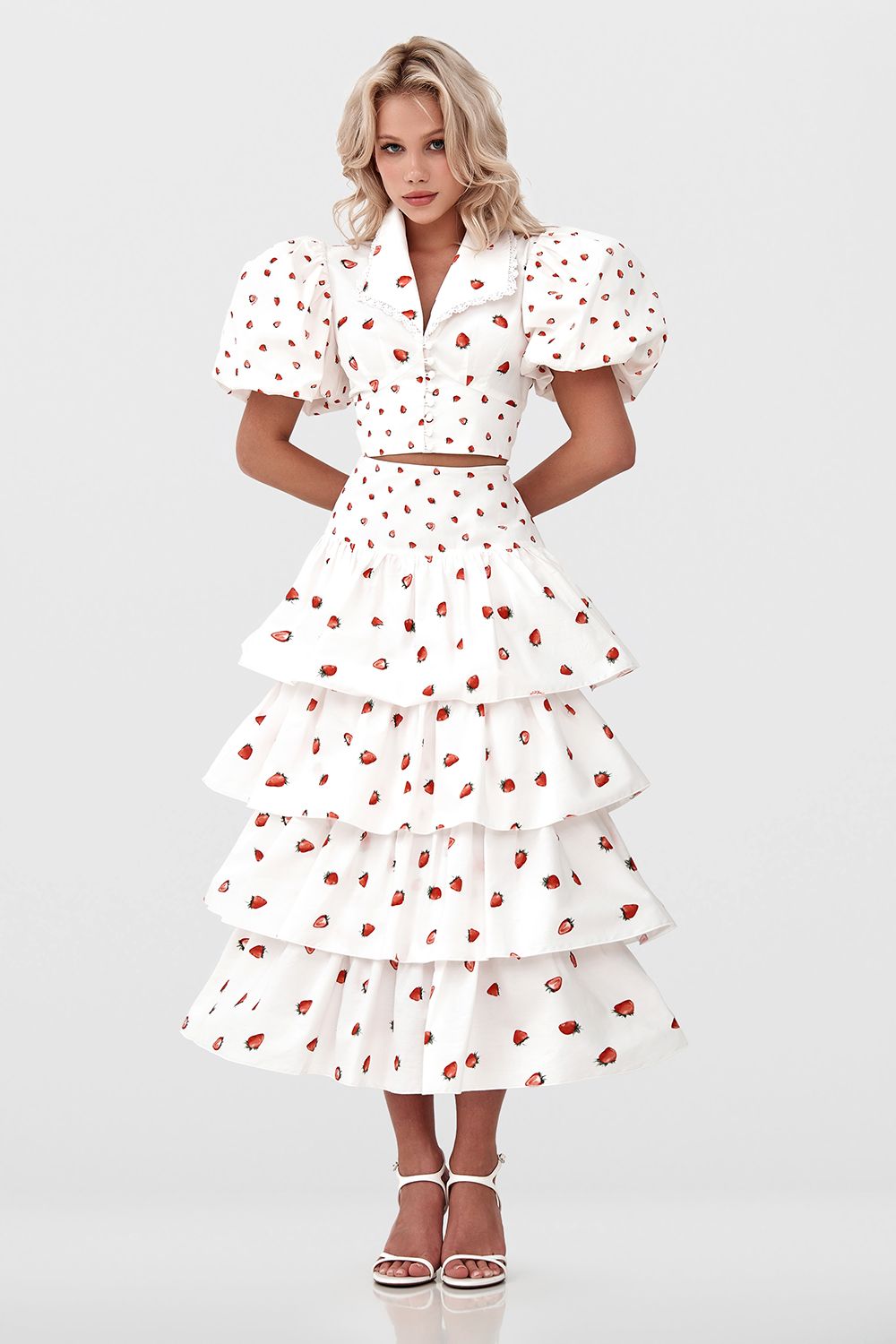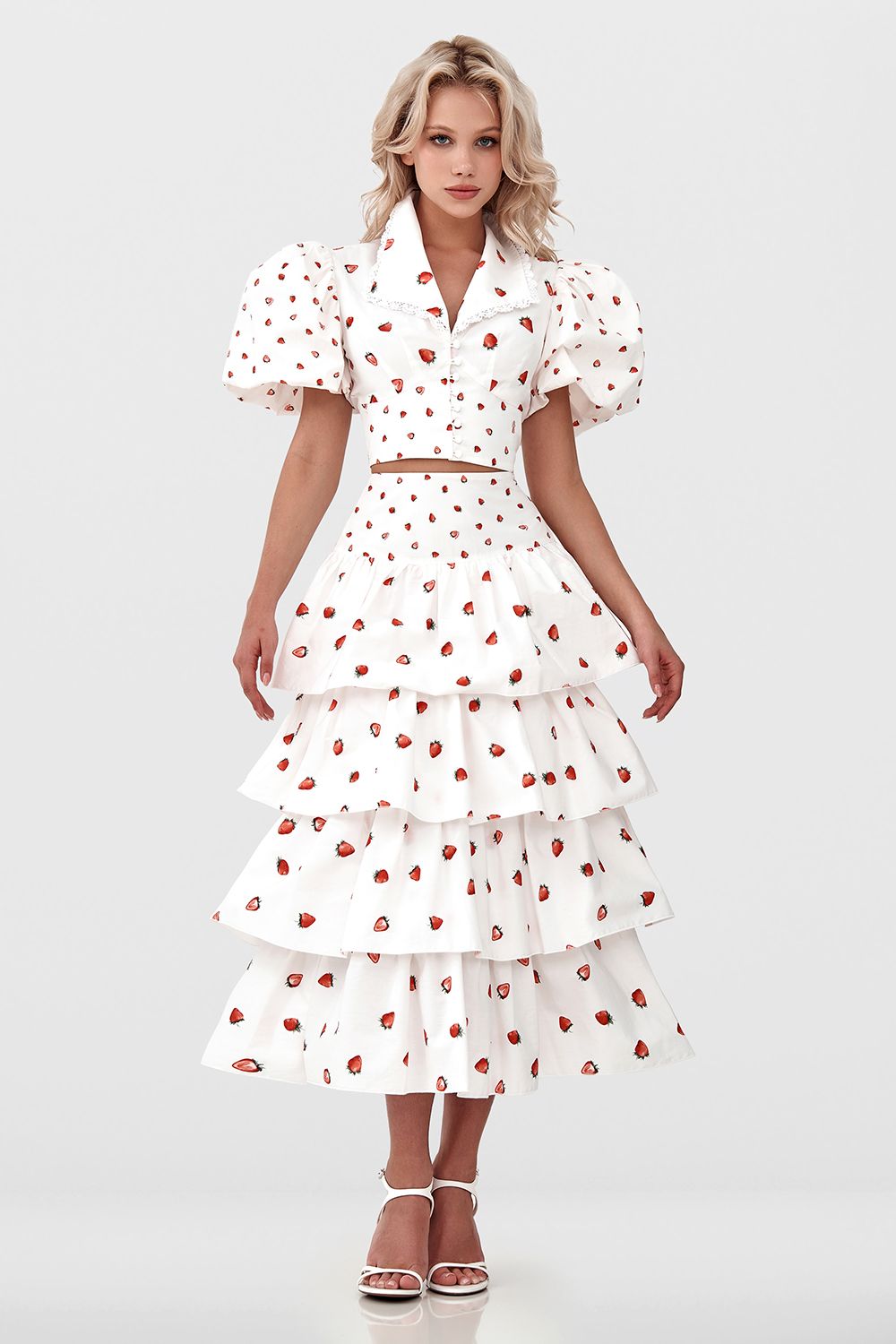 Очаровательная юбка миди с эксклюзивным принтом. Многослойный дизайн юбки создает объемный и романтичный образ. Четыре яруса изящных оборок, выполненные в технике плиссировки, придают юбке легкость и воздушность. Состав: 100% хлопок, Подкладка 100% хлопок