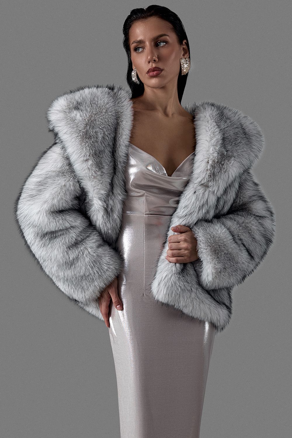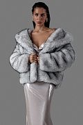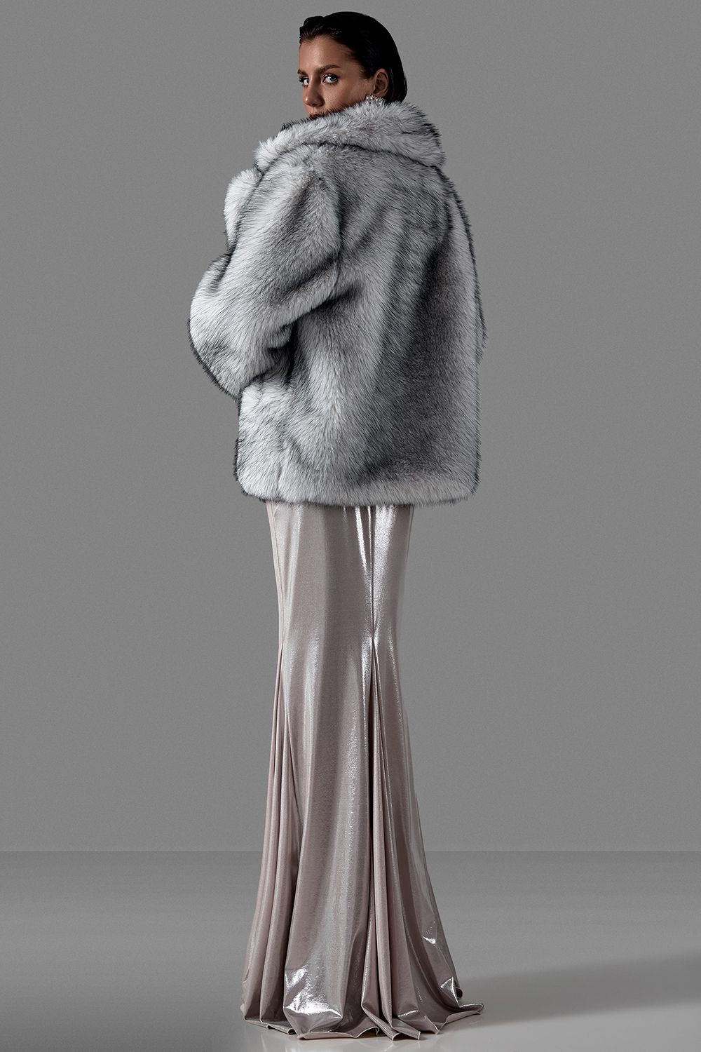 Эффектная короткая шуба из мягкого экомеха с выразительной фактурой. Модель выполнена в холодном серо-белом оттенке с естественными переходами, создающими визуальный объем и глубину. Свободный силуэт и спущенная линия плеч формируют расслабленную, но статусную посадку. Температурный режим: до -5. Состав: 100% Полиэстер