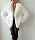 Белая короткая шуба из мягкого экомеха с выразительной фактурой. Модель выполнена в холодном серо-белом оттенке с естественными переходами, создающими визуальный объем и глубину. Свободный силуэт и спущенная линия плеч формируют расслабленную, но статусную посадку. Состав: 100% Полиэстер