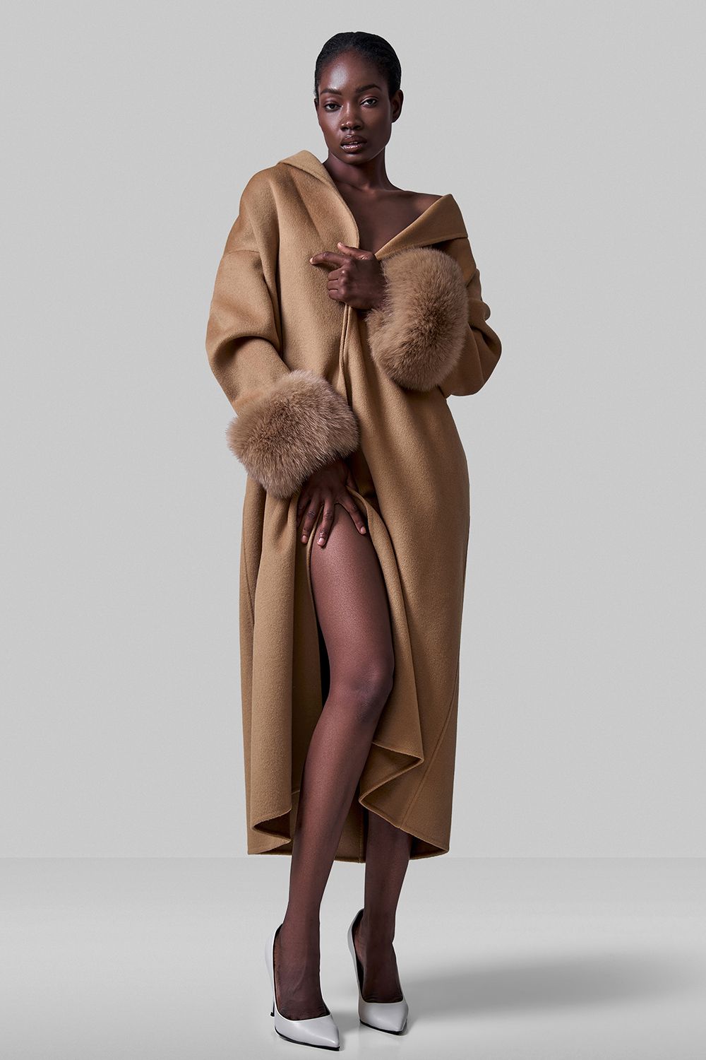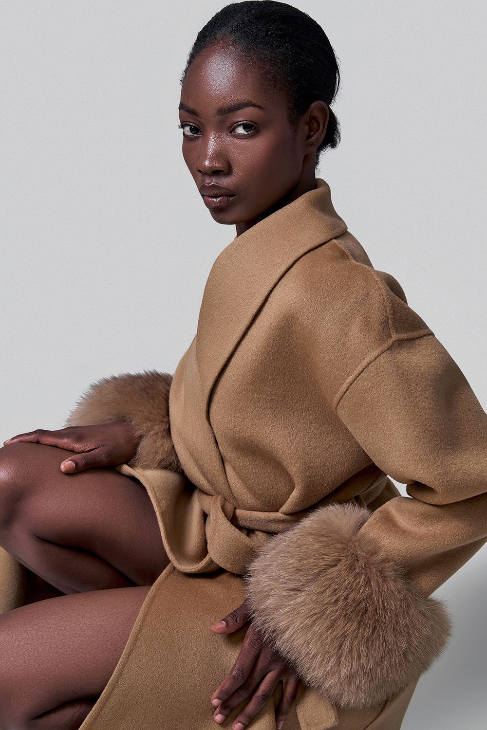 Элегантное пальто из премиальной шерсти — воплощение сдержанной роскоши и утонченного стиля. Модель прямого силуэта с акцентом на талии благодаря поясу из основной ткани. Великолепный натуральный мех лисы на манжетах придает изделию благородный акцент и визуальную теплоту. Мех съемный, что позволяет трансформировать образ в зависимости от сезона. Длина по спинке 125 см. Благодаря составу пальто подходит на температурный режим от +10 до -5 С°, в зависимости от индивидуального восприятия к воздействию холода. Состав: 100% шерсть